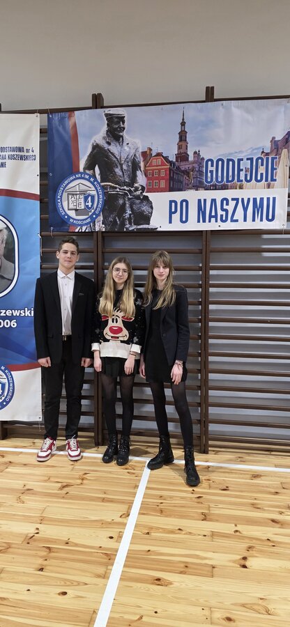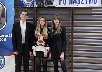 Uczestnikami tego konkursu byli uczniowie klasy VIIb: Oliwia Dawid, Weronika Kram i Sebastian Kamieniarz, którzy w pierwszym kroku przeszli eliminacje szkolne, a na konkursie powiatowym na wysokim poziomie zaprezentowali naszą szkołę. Trzeba przyznać, że zmierzenie się z gwarą wielkopolską, językiem, który zanika, jest trudnym zadaniem i rzadko kto chce się go podjąć. Tym bardziej gratulujemy im zmierzenia się z gwarowym wyzwaniem.