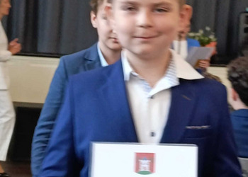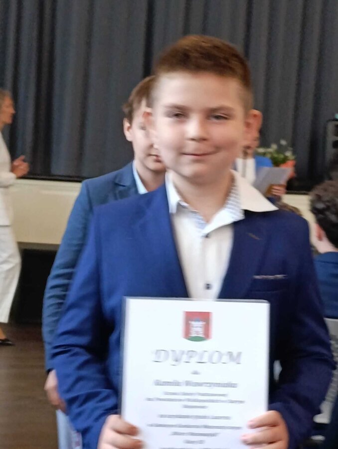Szymon Grzesiewicz - kl. 8a - nagrodzony za godne reprezentowanie szkoły w licznych zawodach sportowych na szczeblu gminy i powiatu,