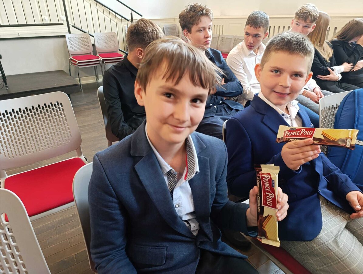 Weronika Kram - kl. 6b - nagrodzona za bardzo wysokie wyniki w nauce oraz reprezentowanie szkoły w konkursach szkolnych, gminnych i powiatowych. Sumiennie wywiązuje się ze swoich obowiązków szkolnych, odznacza się bardzo wysoką kulturą osobistą,
