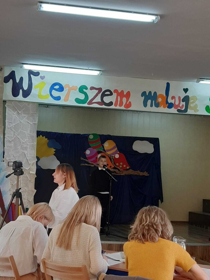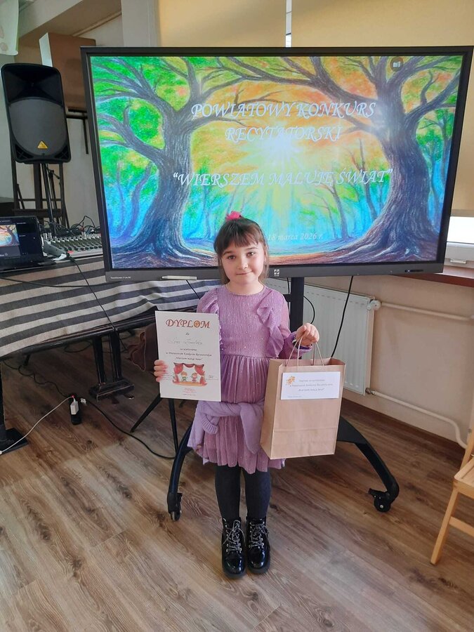 Lena Zamelska z klasy 2a oczarowała jury wierszem Jana Brzechwy pt. „Kolory”, zdobywając zasłużone wyróżnienie!