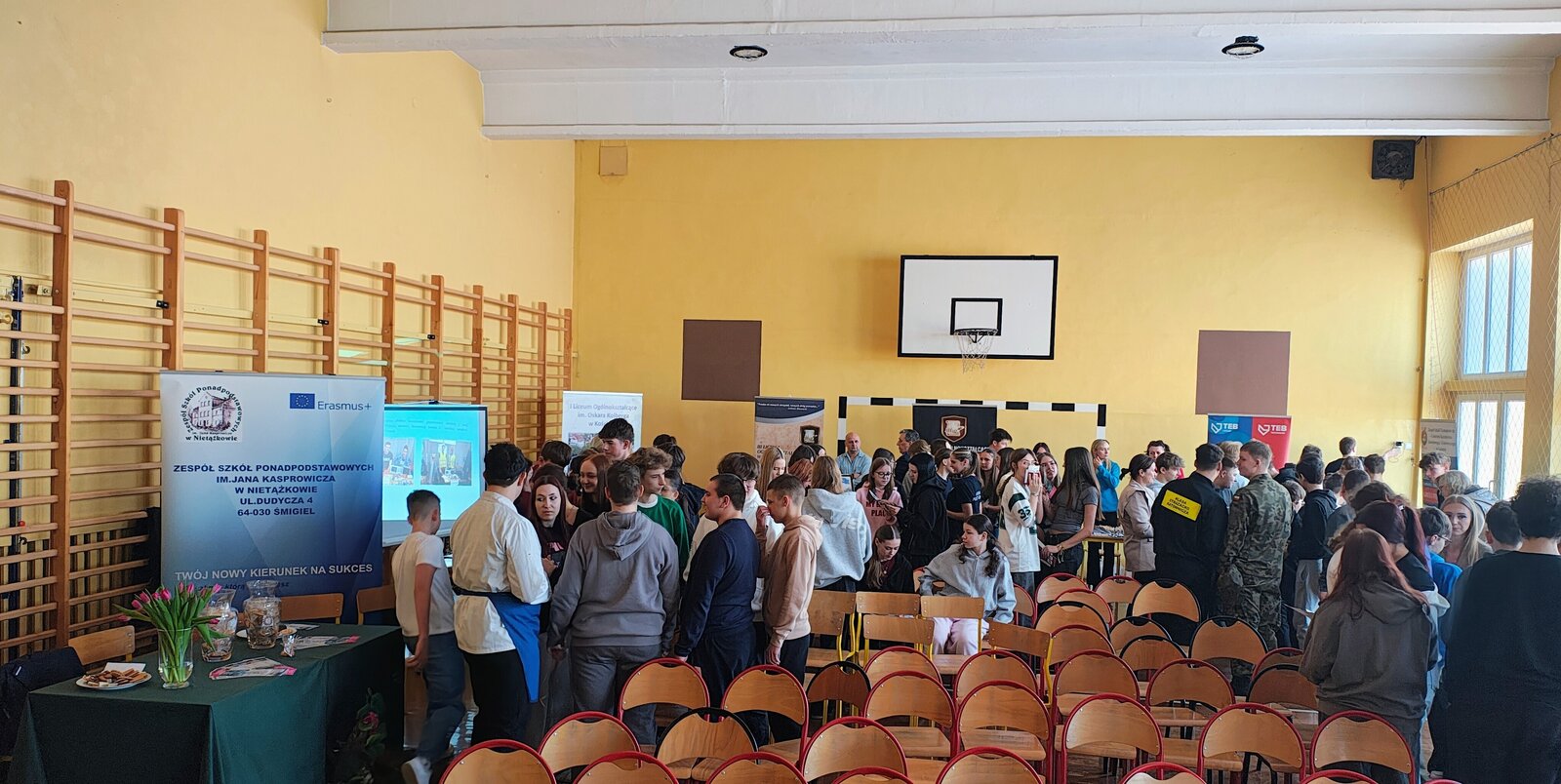 6 marca 2026 r. w Szkole Podstawowej im. Powstańców Wielkopolskich w Starym Bojanowie odbyły się Targi Edukacyjne dla uczniów klas 7 i 8. Wydarzenie było doskonałą okazją do poznania oferty szkół ponadpodstawowych oraz zastanowienia się nad wyborem dalszej drogi edukacyjnej. Podczas targów swoją ofertę zaprezentowało 7 szkół ponadpodstawowych z Kościana, Nietążkowa oraz Leszna. Przedstawiciele szkół opowiedzieli o kierunkach kształcenia oraz przedstawili propozycje przygotowane na rok szkolny 2026/2027. Uczniowie mogli poznać zarówno dobrze znane kierunki, jak i nowe zawody oraz profile klas, które pojawiły się w ofercie szkół. Szczególnym elementem spotkania była obecność absolwentów naszej szkoły, którzy przyjechali wraz z przedstawicielami swoich szkół ponadpodstawowych. Podzielili się oni swoimi doświadczeniami i opowiedzieli młodszym kolegom i koleżankom, jak wygląda nauka w wybranych przez nich szkołach. Po krótkich prezentacjach uczniowie mieli możliwość podejść do przygotowanych stanowisk, porozmawiać z przedstawicielami szkół, zadać pytania oraz dowiedzieć się więcej o interesujących ich kierunkach. Targi Edukacyjne cieszyły się dużym zainteresowaniem i były dla uczniów wartościową okazją do zdobycia informacji, które z pewnością pomogą im w podjęciu ważnej decyzji dotyczącej wyboru szkoły ponadpodstawowej.