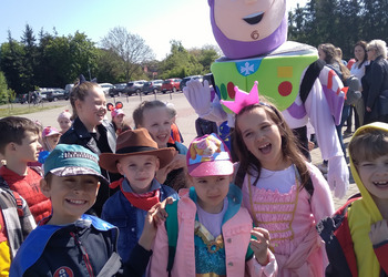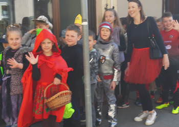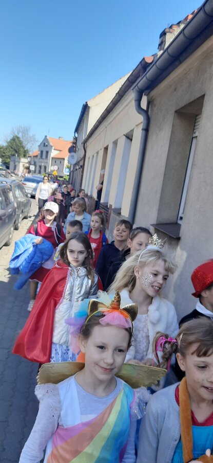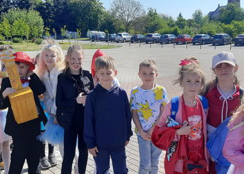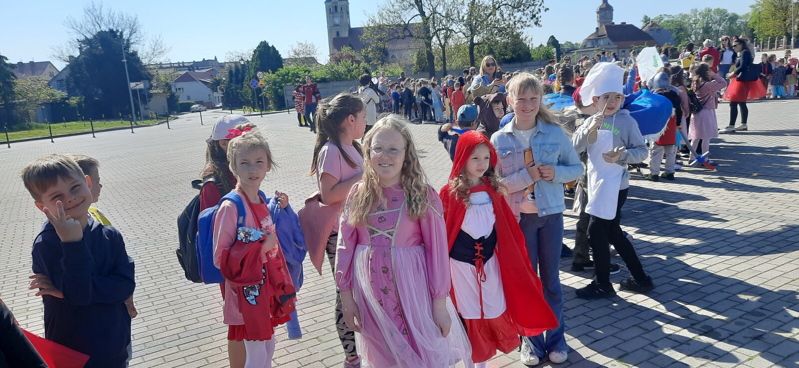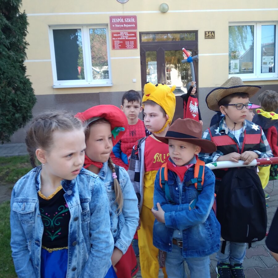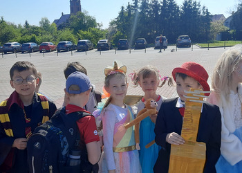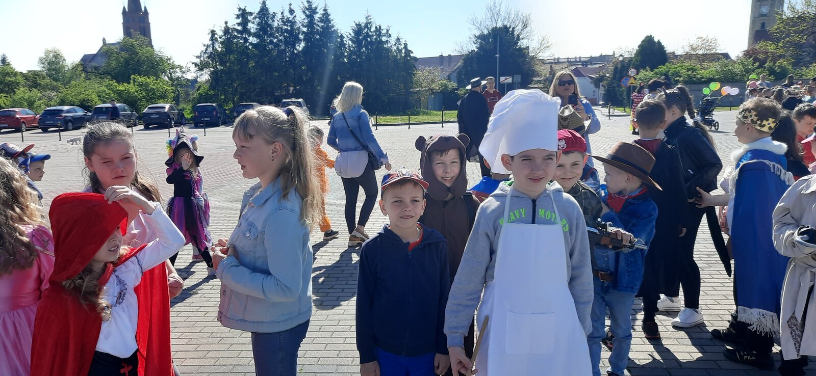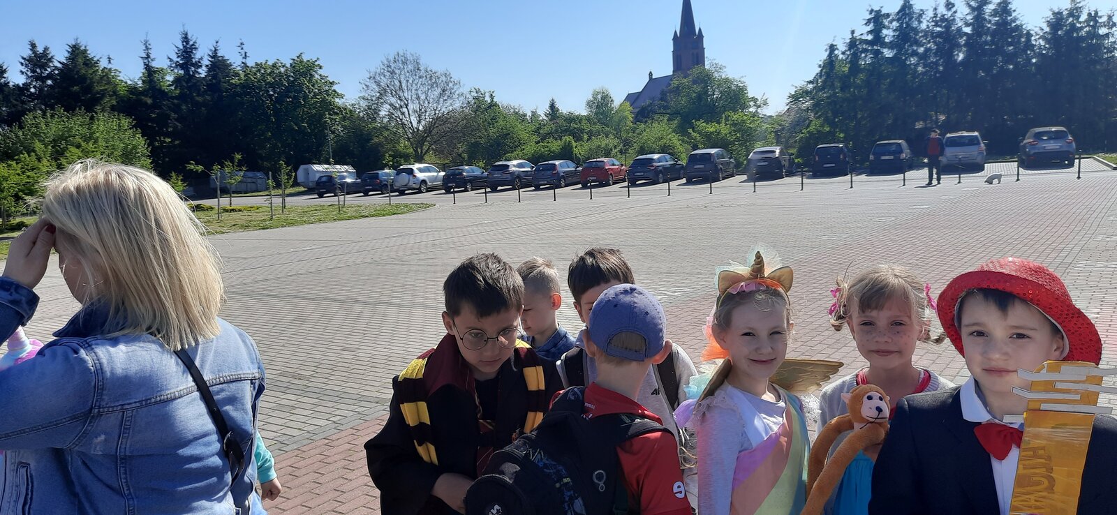 W piątkowe przedpołudnie uczniowie klas 1-3 wzięli udział w kolorowym bajkowym korowodzie w Śmiglu. Wzięło w nim udział ponad 900 dzieci w różnych przebraniach. Organizatorem była Miejska Biblioteka Publiczna, która tego dnia rozstrzygnęła konkurs plastyczny "Postacie bajkowe czytają książki". Miło nam poinformować, że Sebastian Bogdanowicz- uczeń kl.1b zdobył II miejsce w kategorii klas I, pięknie rysując każdemu znane Smerfy.
