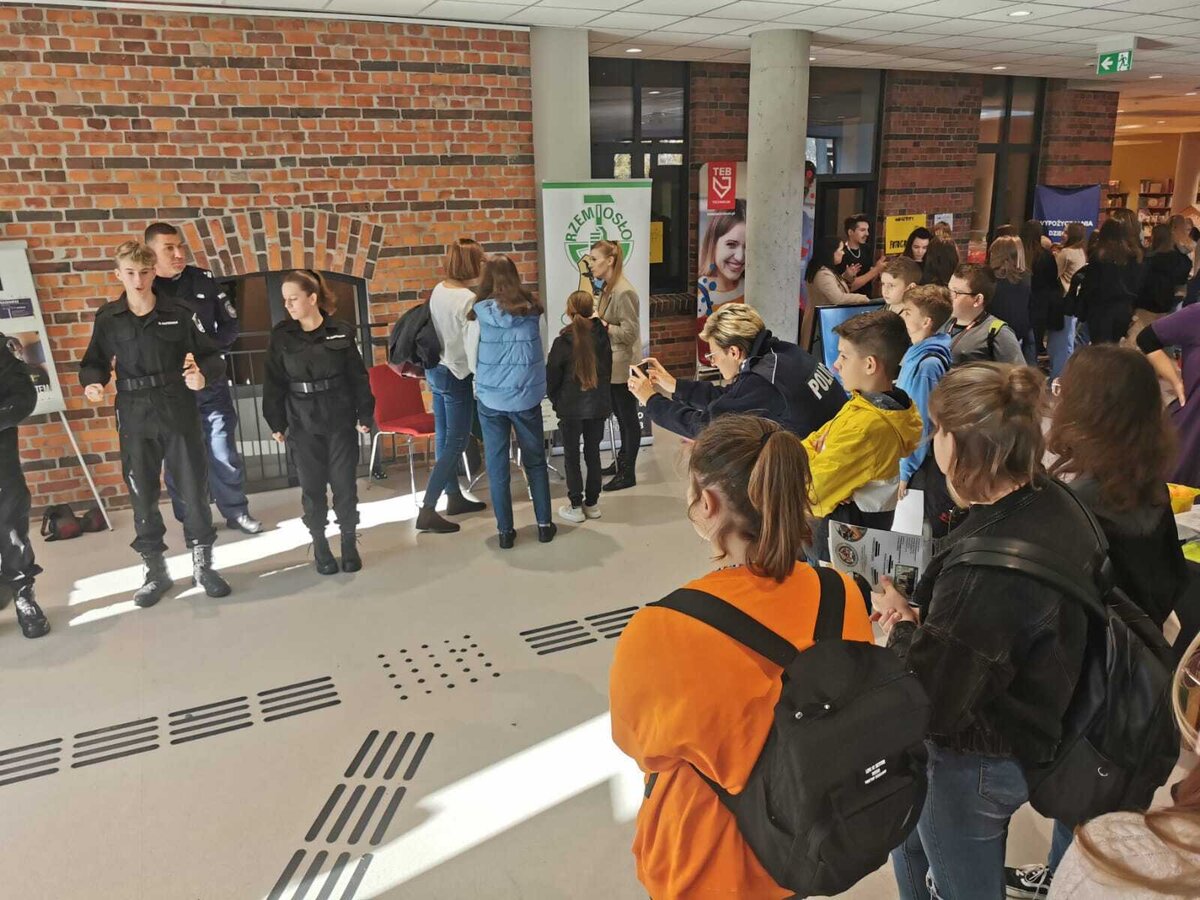 20 października 2022 r. uczniowie kl. 8a i 8b uczestniczyli w Dniu Kariery w Lesznie, które zostały zorganizowane przez Centrum Wsparcia Rzemiosła, Kształcenia Dualnego i Zawodowego w Lesznie oraz Miejską Bibliotekę Publiczną. Podczas jednodniowego eventu uczniowie klas 8 zapoznali się z ofertą leszczyńskich szkół ponadpodstawowych, z ich kierunkami oraz praktycznym wymiarem zawodów. Młodzież wzięła udział w prelekcjach ze specjalistami od myślenia wizualnego, kompetencji niezbędnych na rynku pracy, kwalifikacji.