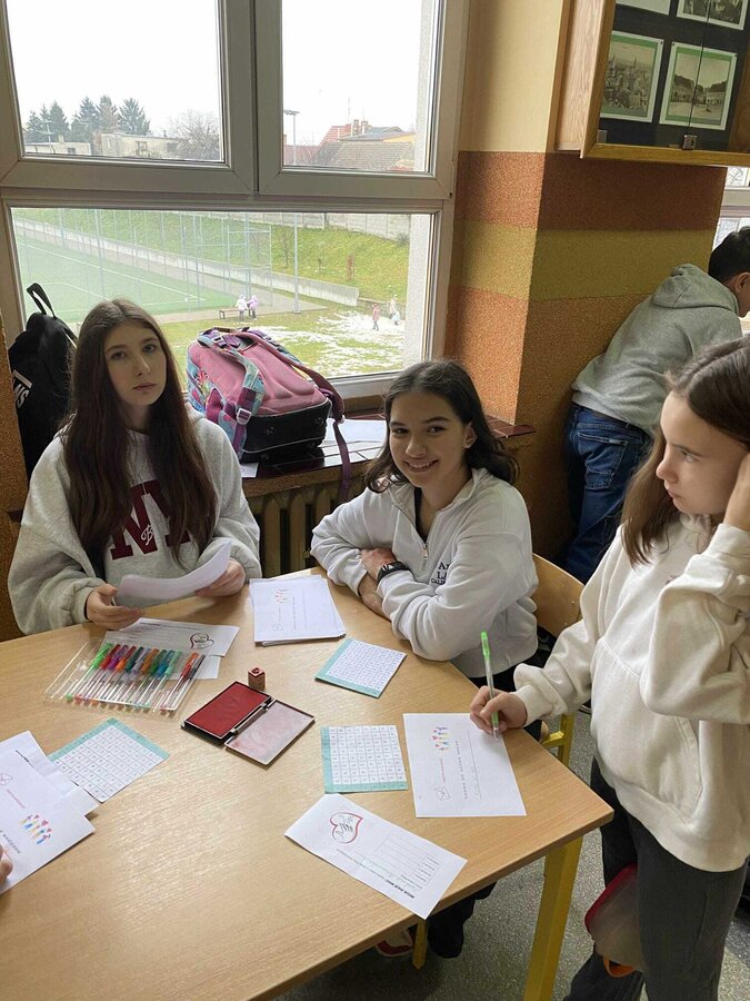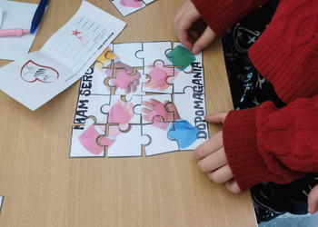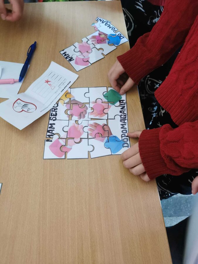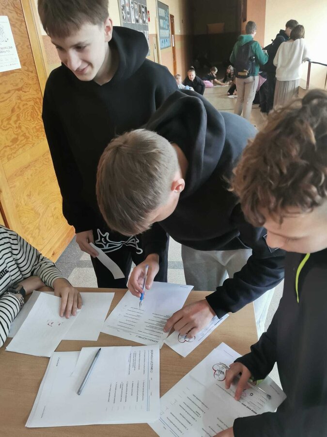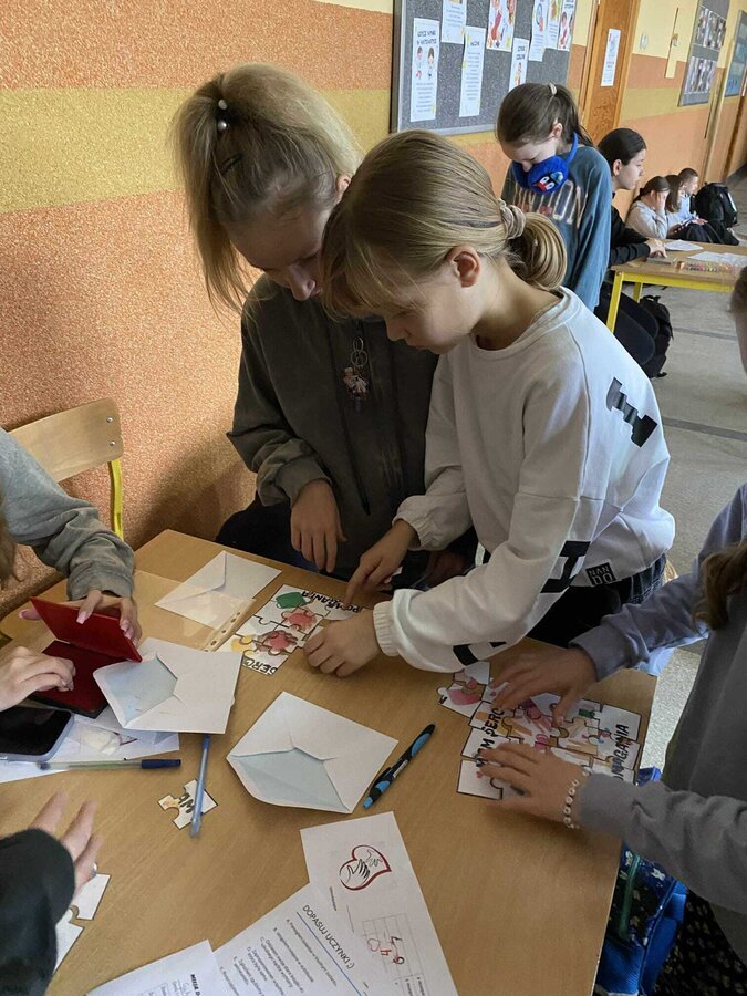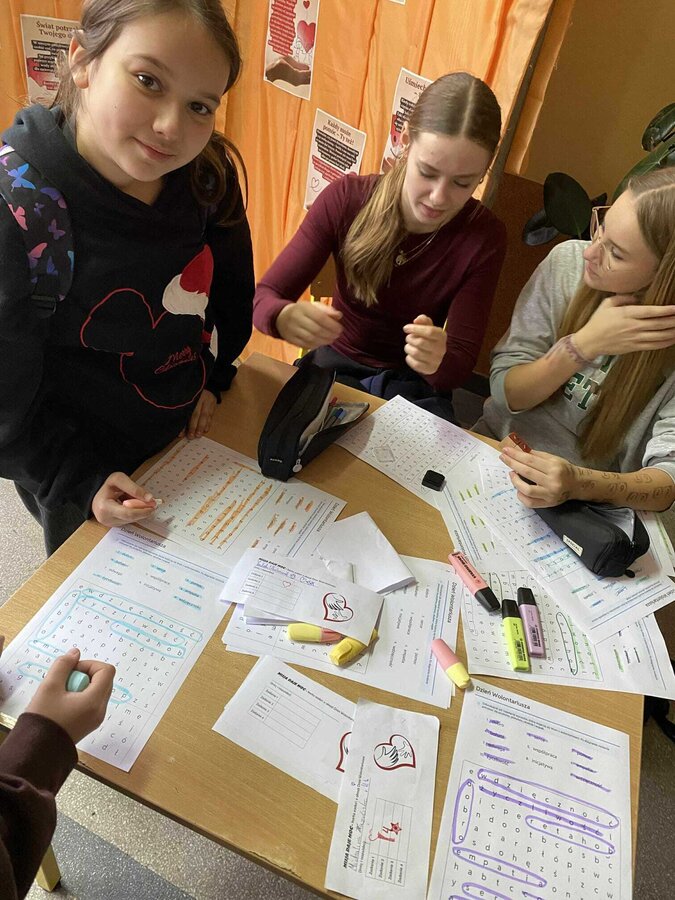 W przeddzień Dnia Wolontariusza uczniowie klas 4–8 wzięli udział w szkolnej akcji „Misja Dobra”. Na czterech stanowiskach czekały na nich zadania: puzzle, szyfry, wykreślanka i dopasowywanie uczynków. Za każde poprawnie wykonane zadanie uczniowie zdobywali pieczątki, a komplet czterech pozwalał wziąć udział w losowaniu nagród. Wydarzenie poprowadziły z ogromnym zaangażowaniem wolontariuszki z klasy 8b, które przez wszystkie przerwy tłumaczyły zadania, sprawdzały odpowiedzi i przybijały pieczątki. Podczas Mikołajek wyróżniliśmy również uczniów, którzy przez cały rok aktywnie działają w wolontariacie i zawsze można na nich liczyć. Dziękujemy wszystkim uczestnikom za udział, a wolontariuszom za tworzenie dobra każdego dnia! ♥