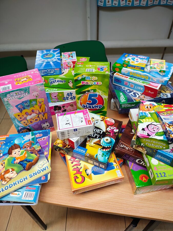 Z inicjatywy naszej uczennicy zorganizowaliśmy w szkole zbiórkę gier planszowych i karcianych dla dzieci przebywających w szpitalu. Pomysł narodził się po tym, jak uczennica zauważyła, że w świetlicy Szpitala Klinicznego im. Karola Jonschera Uniwersytetu Medycznego w Poznaniu brakuje ciekawych gier i zabaw, które umiliłyby czas małym pacjentom. Dzięki ogromnemu zaangażowaniu uczniów, rodziców i wychowawców zebraliśmy wiele wspaniałych gier, które sprawią radość dzieciom przebywającym w szpitalu oraz w WSWOP "Hospicjum Domowe". Serdecznie dziękujemy wszystkim klasom za udział w akcji, życzliwość i empatię. Dziękujemy za okazane serce!