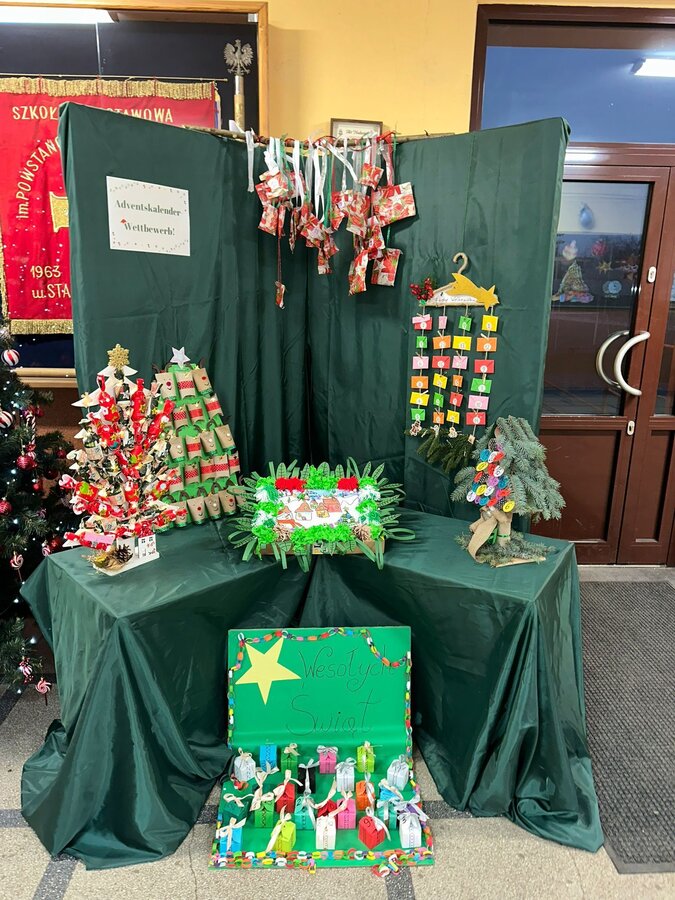 W grudniu w naszej szkole odbył się konkurs z języka niemieckiego „Der schönste Adventskalender” dla uczniów klas 4–6. Uczestnicy przygotowali wyjątkowo piękne i pomysłowe kalendarze adwentowe, wykazując się dużą kreatywnością i starannością.