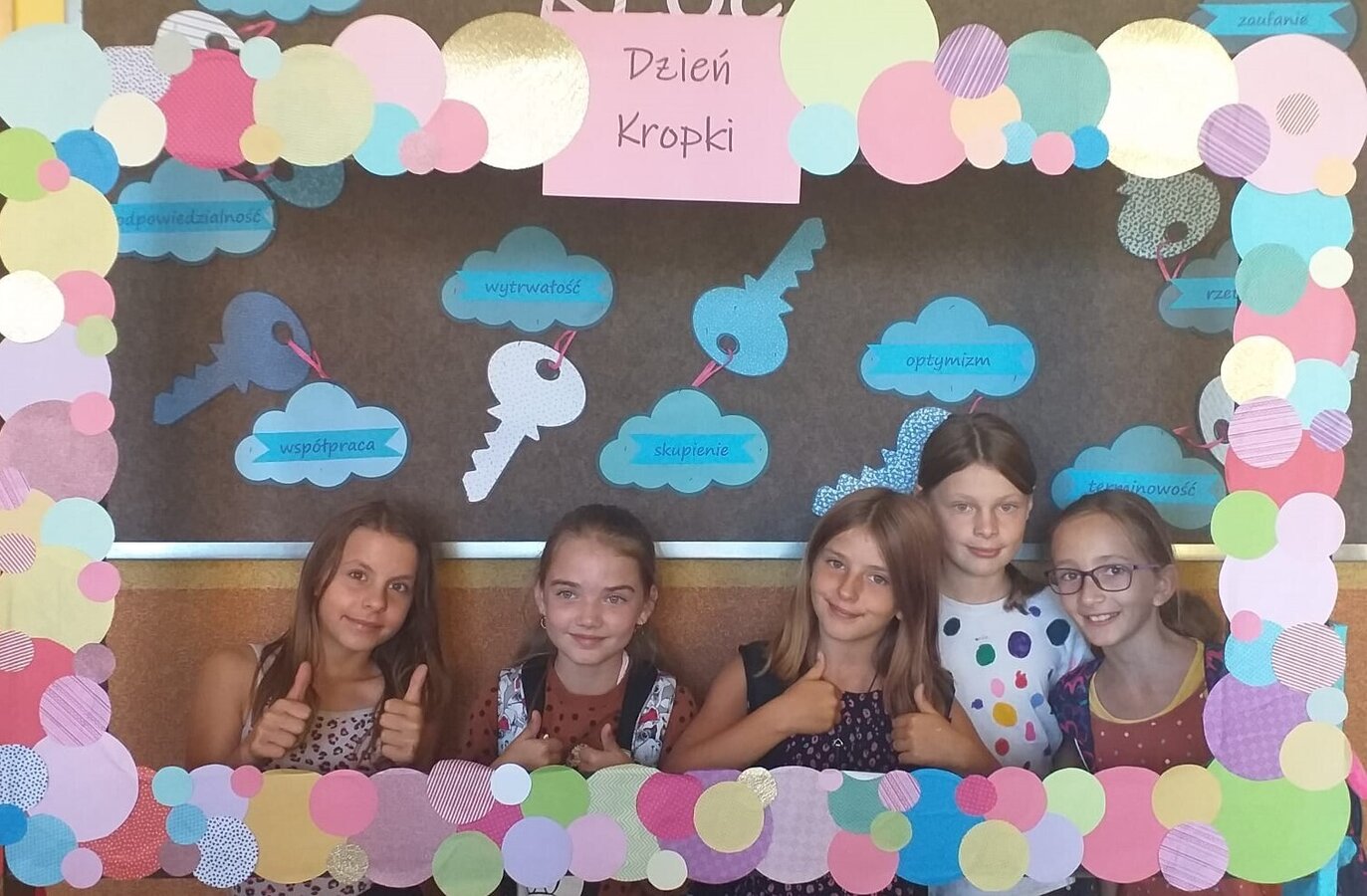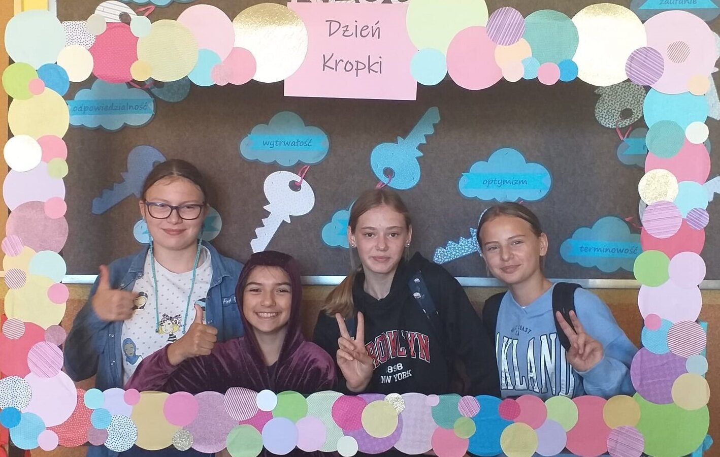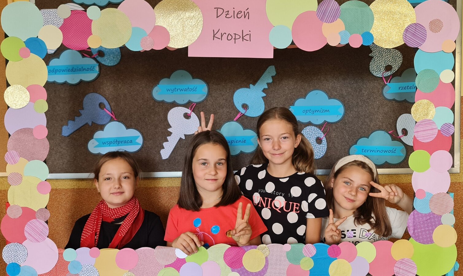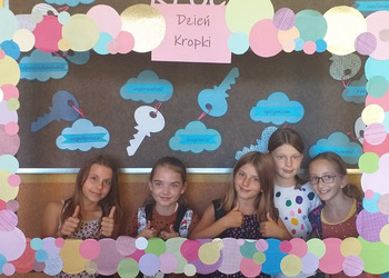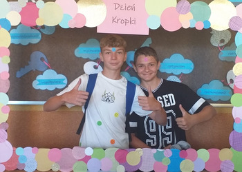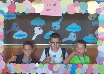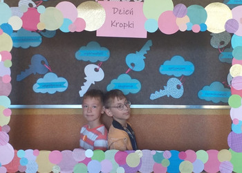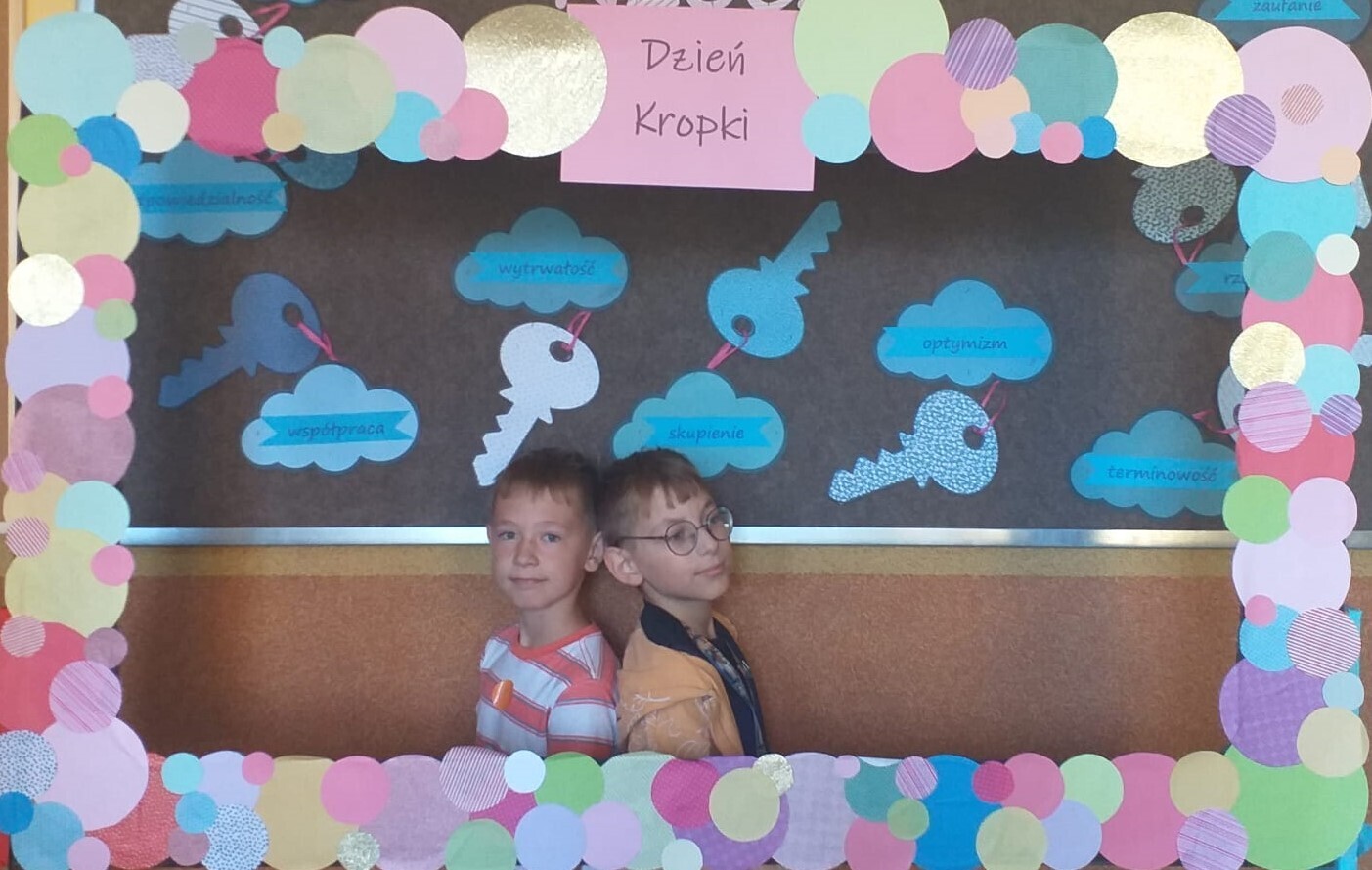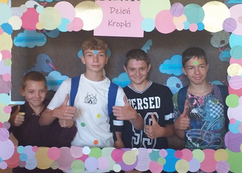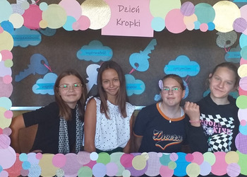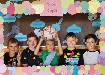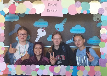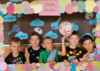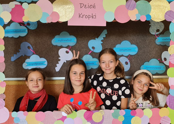 Tego dnia uczniowie i nauczyciele wykorzystali urok kropek i kropeczek i wyeksponowali je w swoich strojach. Rozmawiali też na języku polskim o tym, co zajmuje ich czas, na co poświęcają go najchętniej. Zwracali uwagę, że wszystko zaczyna się od małej kropki, która może nabrać ogromnych rozmiarów, bo przecież każdy ma jakieś zdolności, które warto rozwijać. „Pisali” również o zainteresowaniach, wykorzystując kropki czyli alfabet Braille”a, a że ortografii nigdy dość, kropkowane miejsca uzupełniali odpowiednimi literami. Niemałą atrakcją okazała się również możliwość wykonania zdjęcia w kropkowanej ramie.