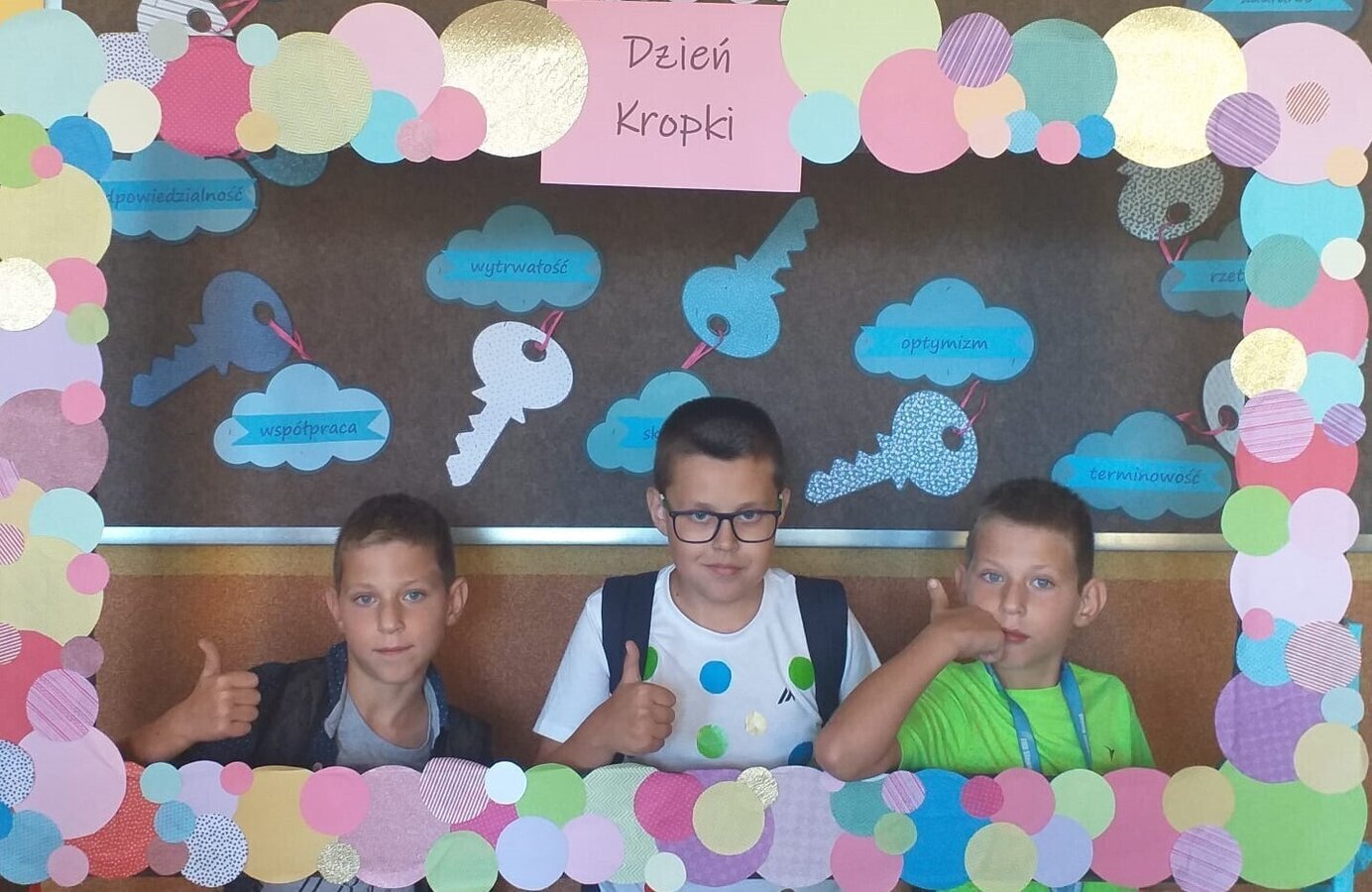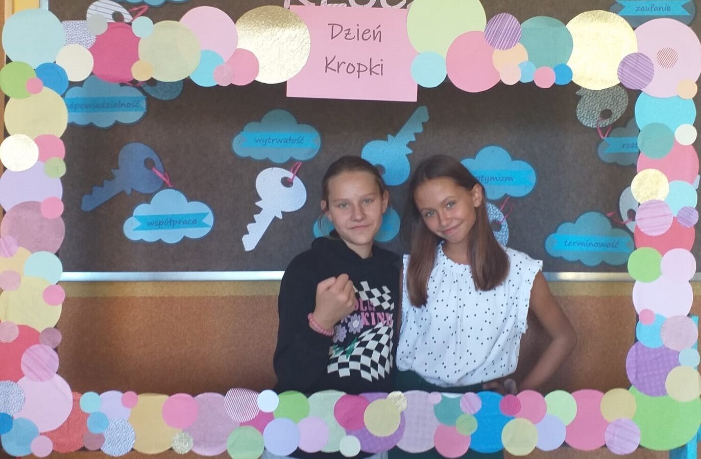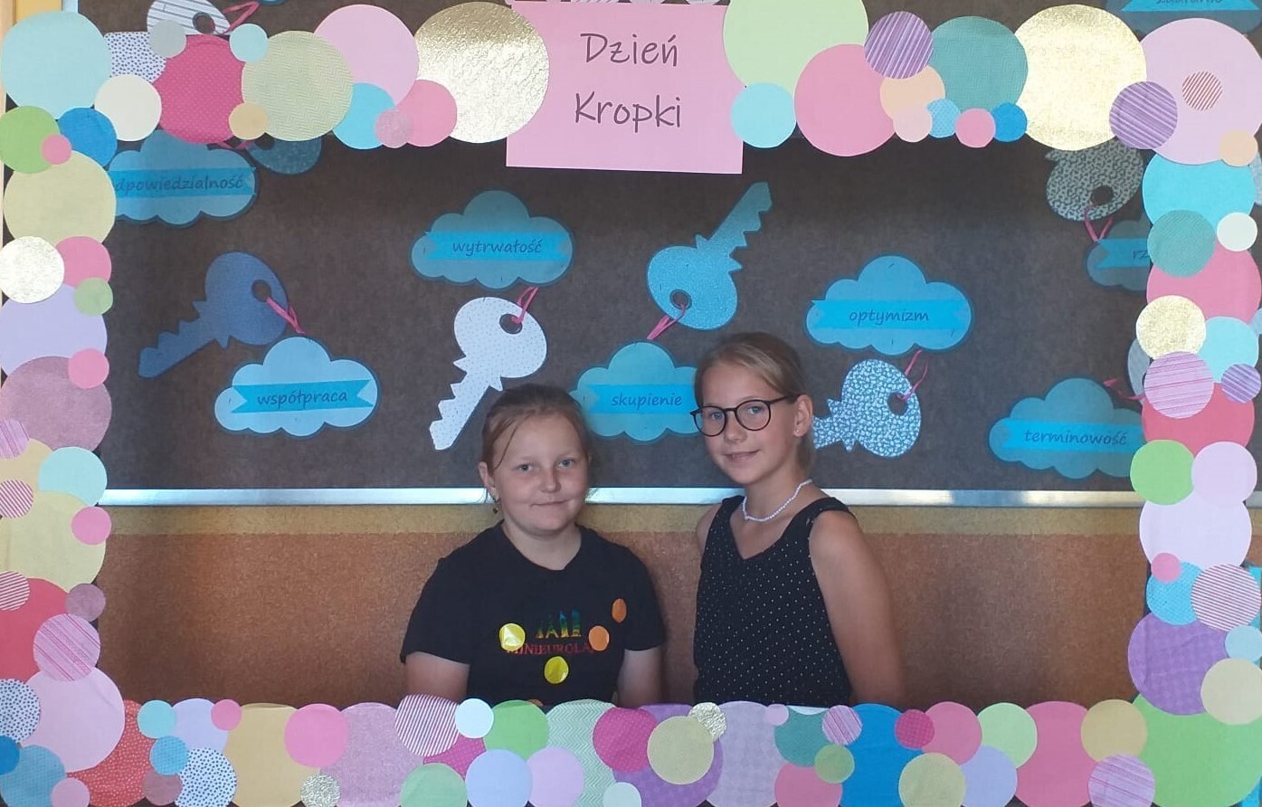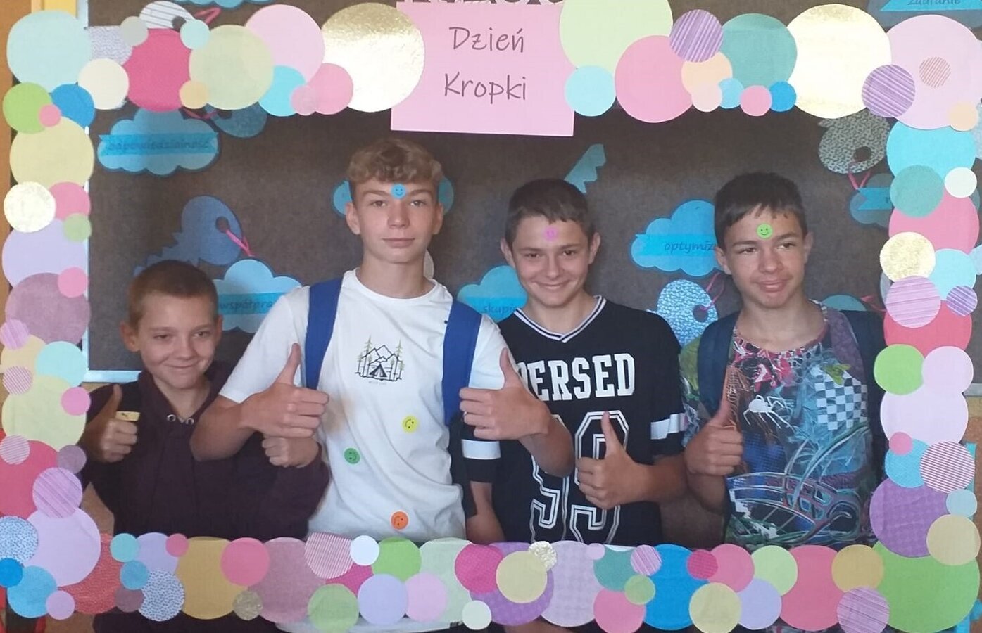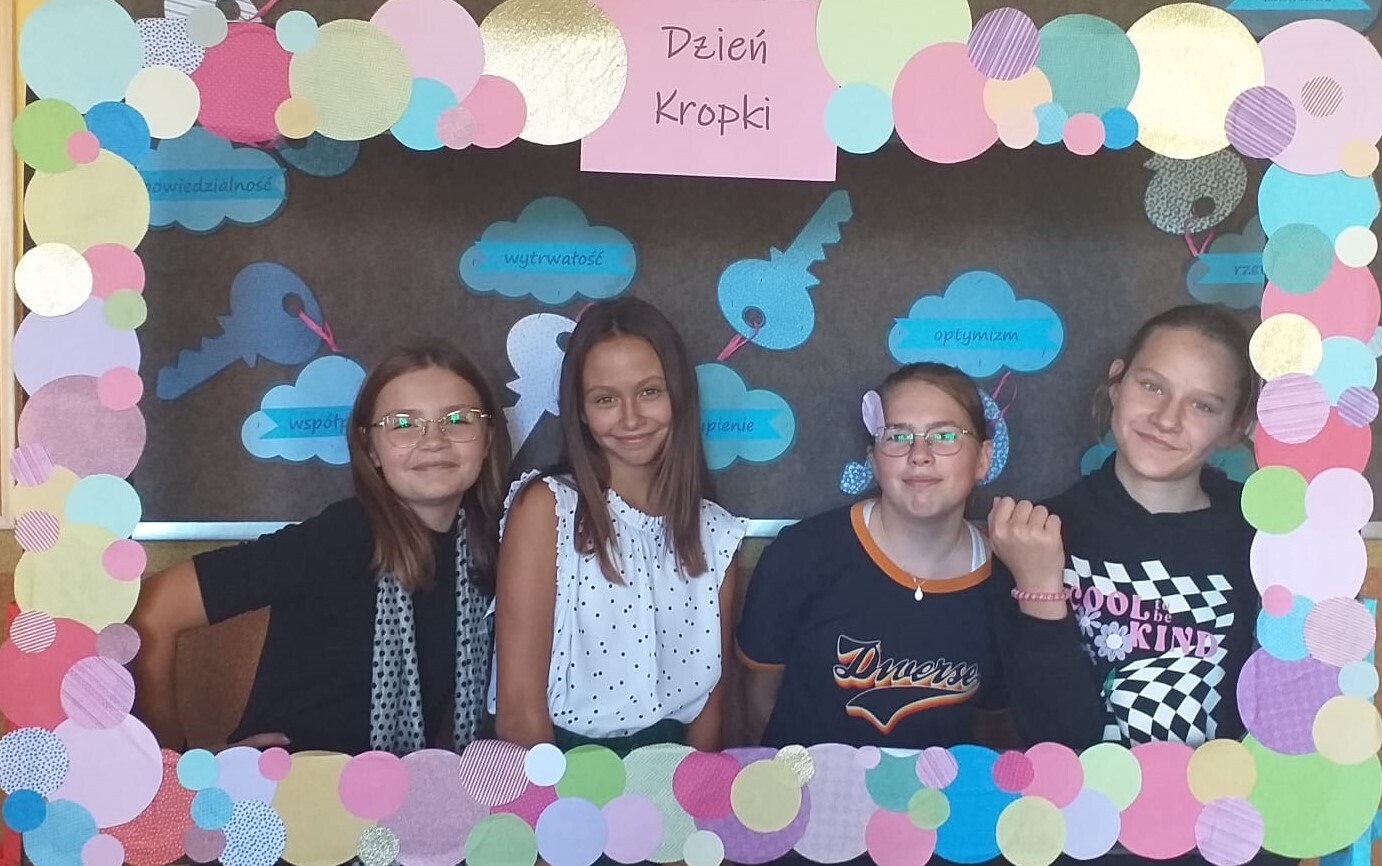 Tego dnia uczniowie i nauczyciele wykorzystali urok kropek i kropeczek i wyeksponowali je w swoich strojach. Rozmawiali też na języku polskim o tym, co zajmuje ich czas, na co poświęcają go najchętniej. Zwracali uwagę, że wszystko zaczyna się od małej kropki, która może nabrać ogromnych rozmiarów, bo przecież każdy ma jakieś zdolności, które warto rozwijać. „Pisali” również o zainteresowaniach, wykorzystując kropki czyli alfabet Braille”a, a że ortografii nigdy dość, kropkowane miejsca uzupełniali odpowiednimi literami. Niemałą atrakcją okazała się również możliwość wykonania zdjęcia w kropkowanej ramie.