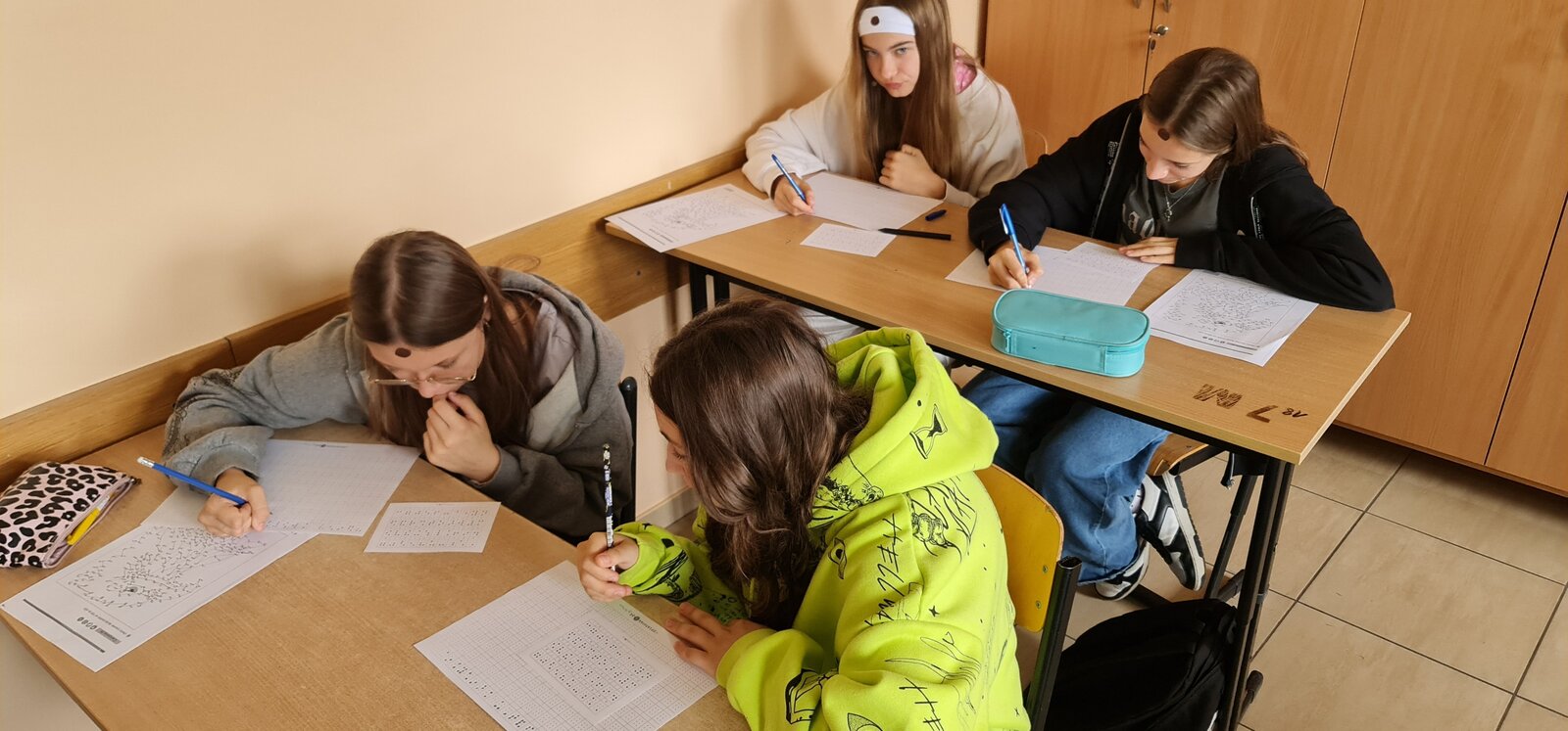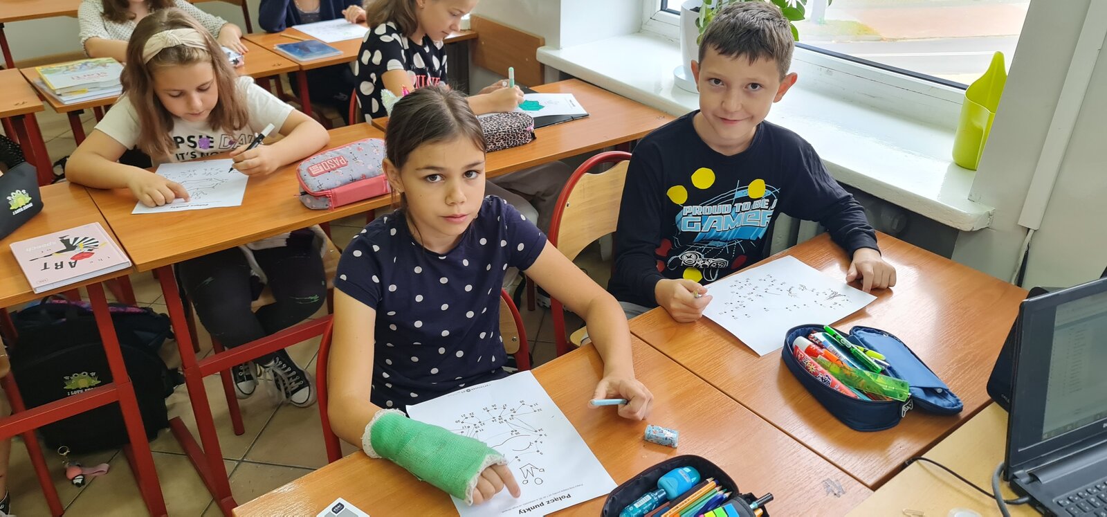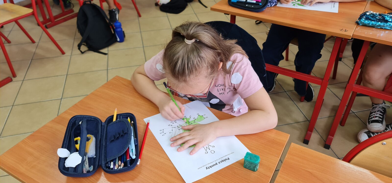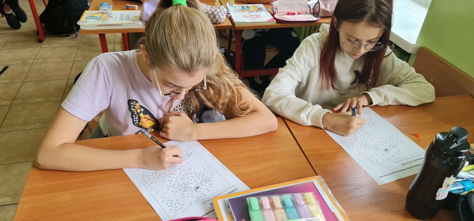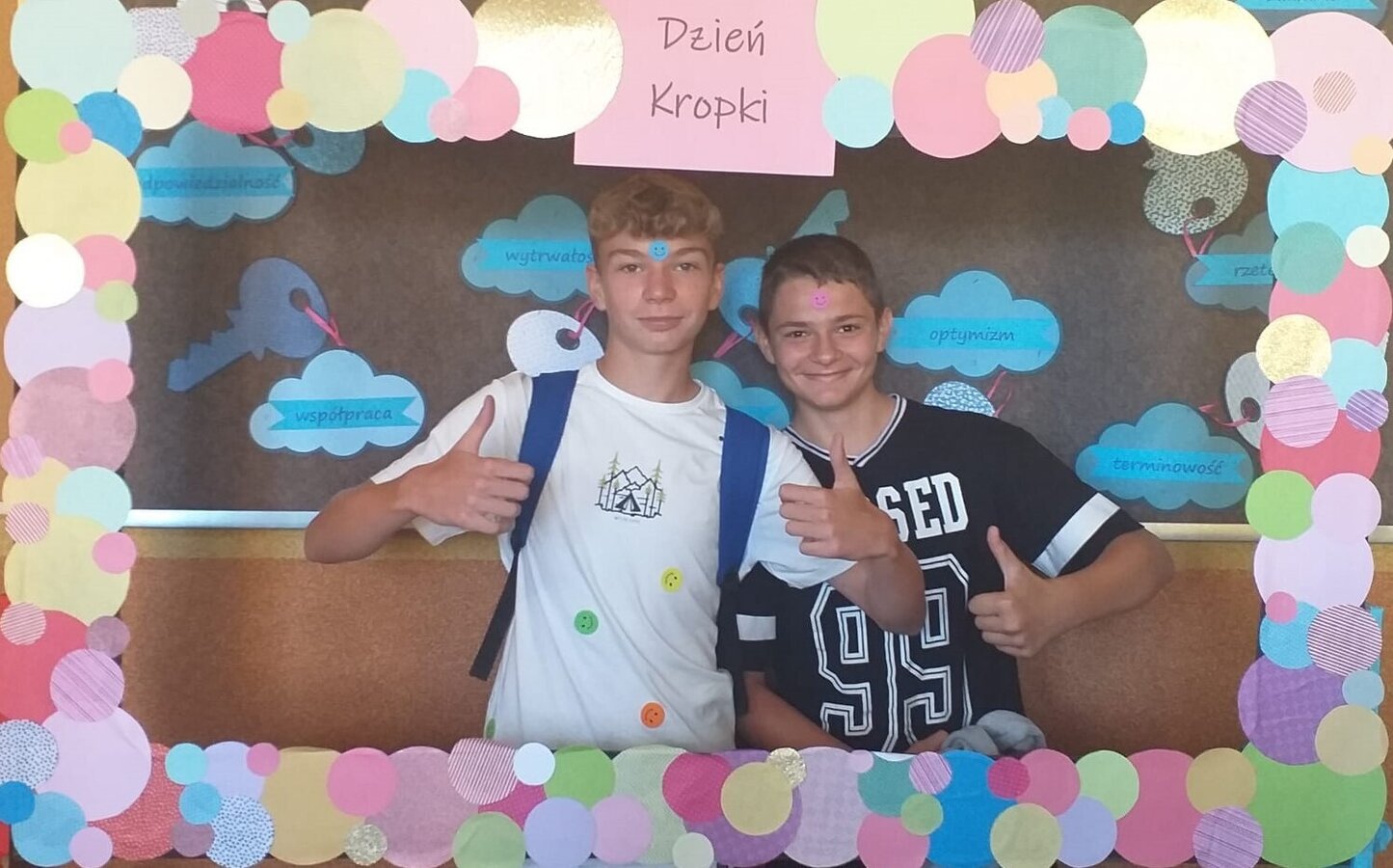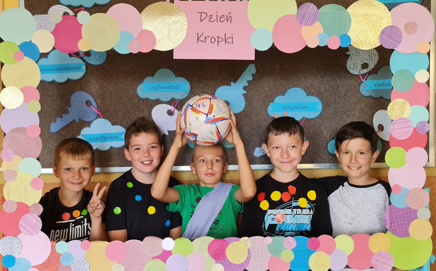 Tego dnia uczniowie i nauczyciele wykorzystali urok kropek i kropeczek i wyeksponowali je w swoich strojach. Rozmawiali też na języku polskim o tym, co zajmuje ich czas, na co poświęcają go najchętniej. Zwracali uwagę, że wszystko zaczyna się od małej kropki, która może nabrać ogromnych rozmiarów, bo przecież każdy ma jakieś zdolności, które warto rozwijać. „Pisali” również o zainteresowaniach, wykorzystując kropki czyli alfabet Braille”a, a że ortografii nigdy dość, kropkowane miejsca uzupełniali odpowiednimi literami. Niemałą atrakcją okazała się również możliwość wykonania zdjęcia w kropkowanej ramie.