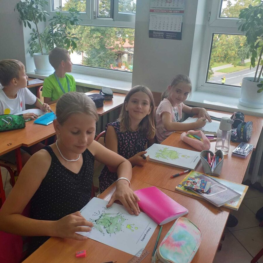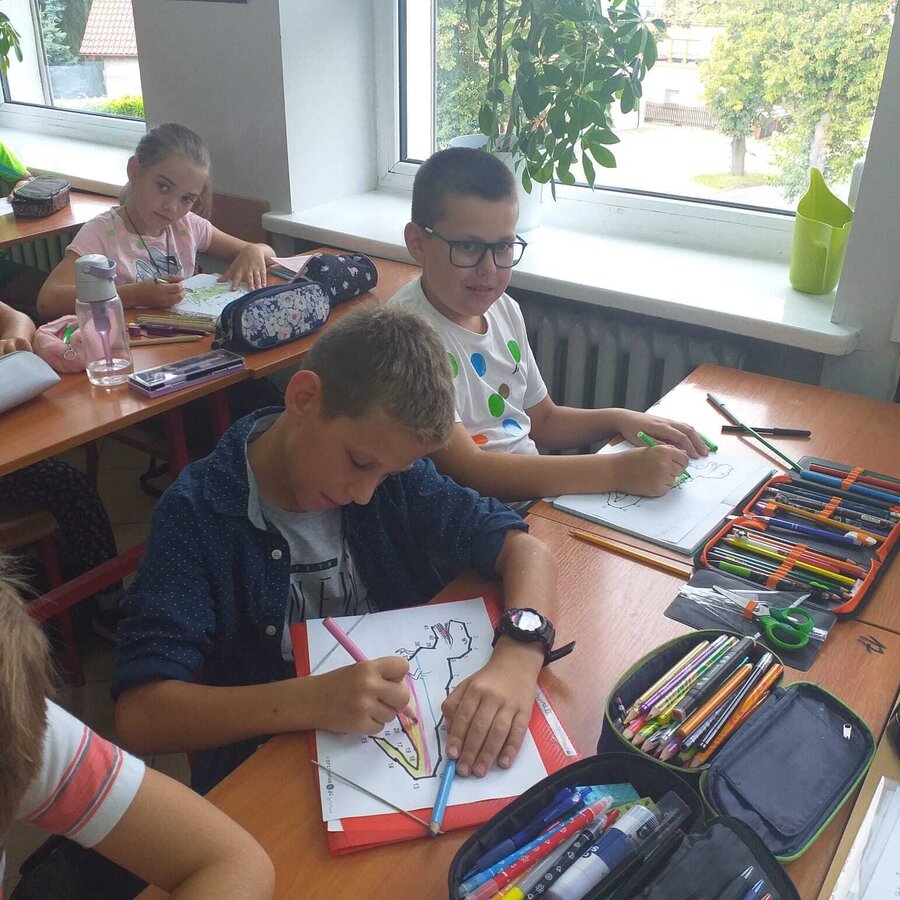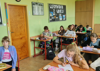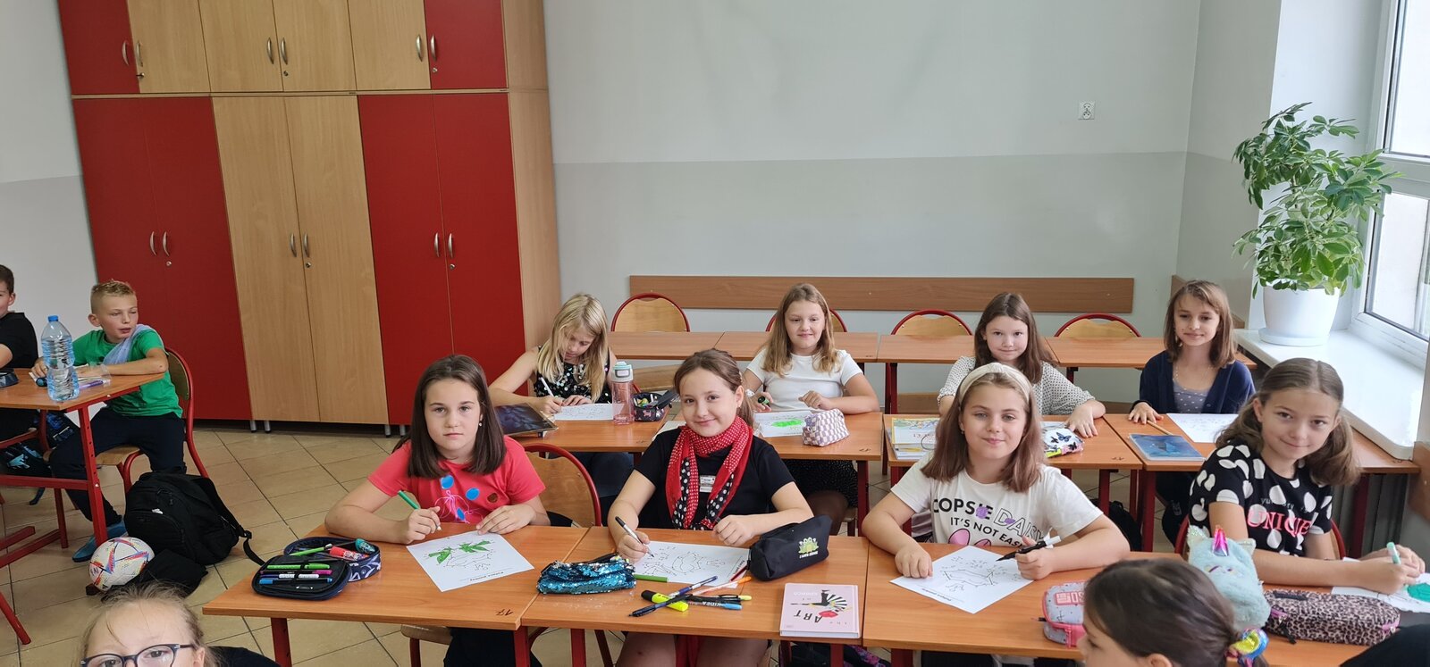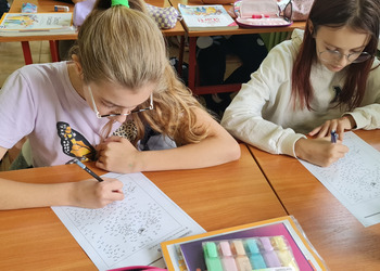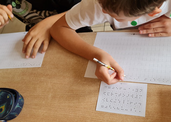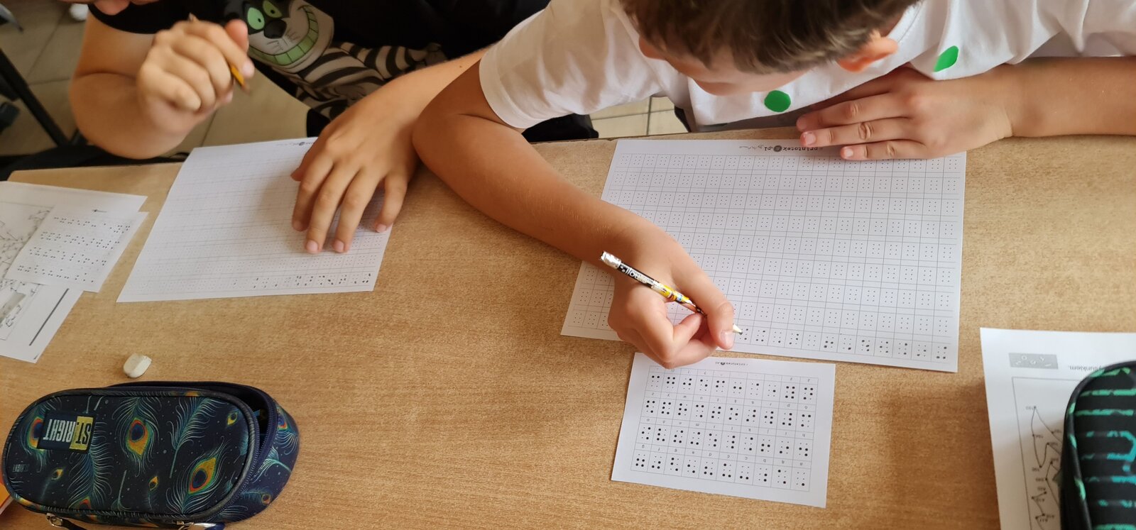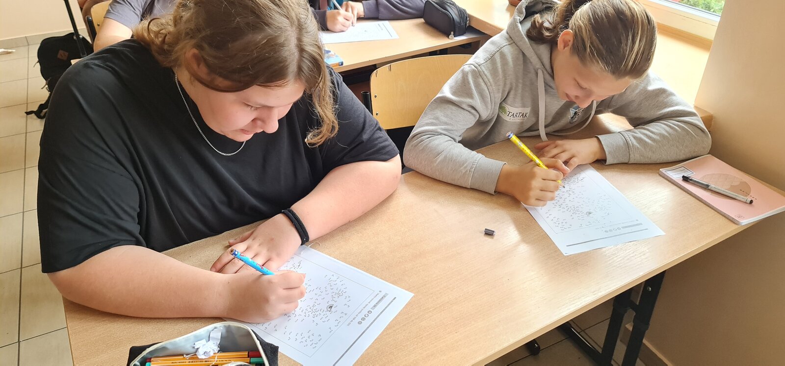 Tego dnia uczniowie i nauczyciele wykorzystali urok kropek i kropeczek i wyeksponowali je w swoich strojach. Rozmawiali też na języku polskim o tym, co zajmuje ich czas, na co poświęcają go najchętniej. Zwracali uwagę, że wszystko zaczyna się od małej kropki, która może nabrać ogromnych rozmiarów, bo przecież każdy ma jakieś zdolności, które warto rozwijać. „Pisali” również o zainteresowaniach, wykorzystując kropki czyli alfabet Braille”a, a że ortografii nigdy dość, kropkowane miejsca uzupełniali odpowiednimi literami. Niemałą atrakcją okazała się również możliwość wykonania zdjęcia w kropkowanej ramie.