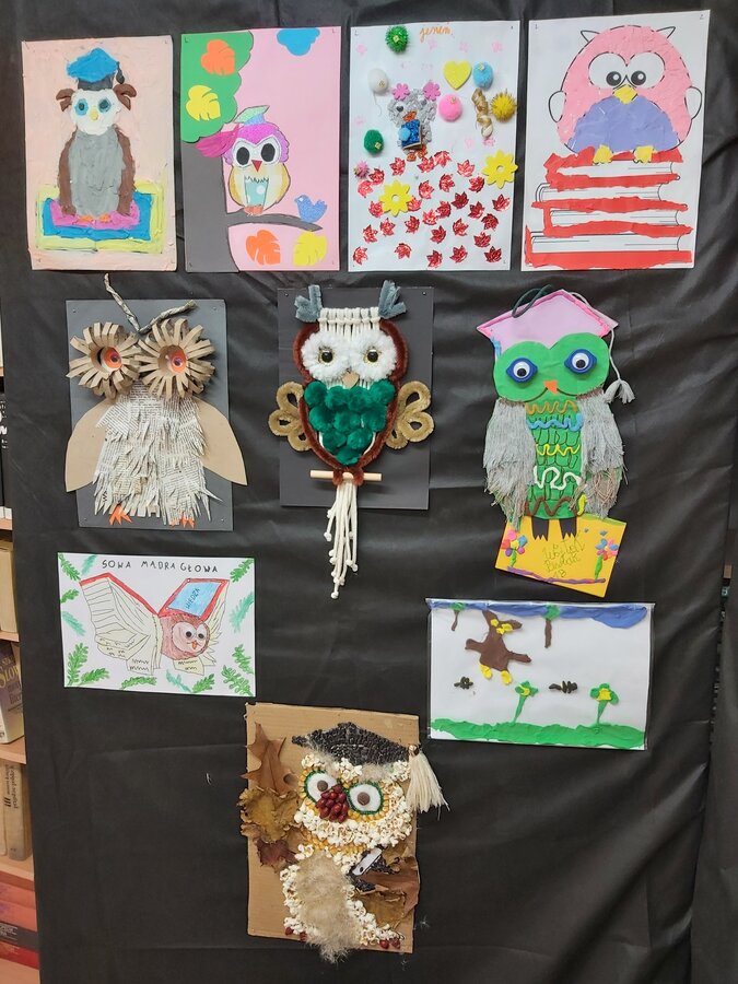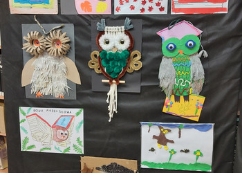 Miesiąc Bibliotek Szkolnych obfitował w wiele różnych wydarzeń. W każdy czwartek października podczas przerw uczniowie przychodzili do biblioteki, aby rozwiązywać zagadki czytelnicze. Za ich poprawne rozwiązanie, otrzymywali oni drobną nagrodę w postaci słodkości lub przyborów szkolnych. Poza tym trwały konkursy plastyczne dla uczniów klas 1-3 i klas 4. W klasach 1-3 uczniowie mieli za zadanie wykonać dowolną techniką – sowę biblioteczną. Wpłynęło wiele pięknych i wyjątkowych prac. Z kolei uczniowie w klasie 4 przygotowywali plakaty reklamujące i polecające ich ulubioną książkę. Natomiast konkurs czytelniczy w klasach 5-8 trwa do 8 grudnia.
