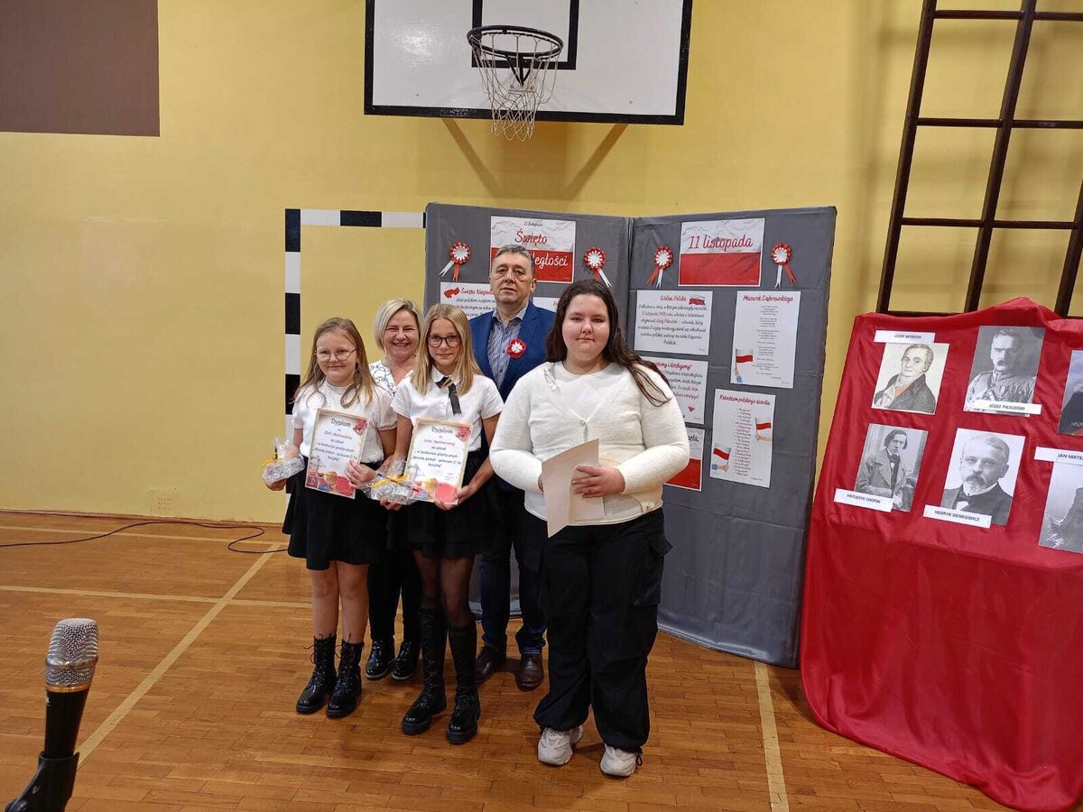 Podczas apelu z okazji Święta Niepodległości zostały wręczone nagrody za konkursy w klasach 1-4.