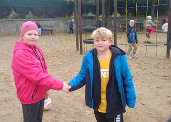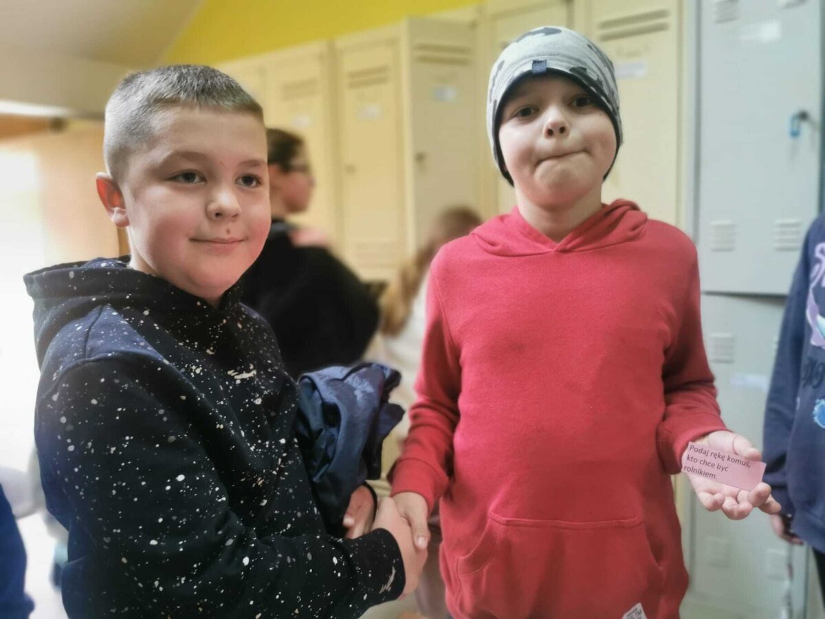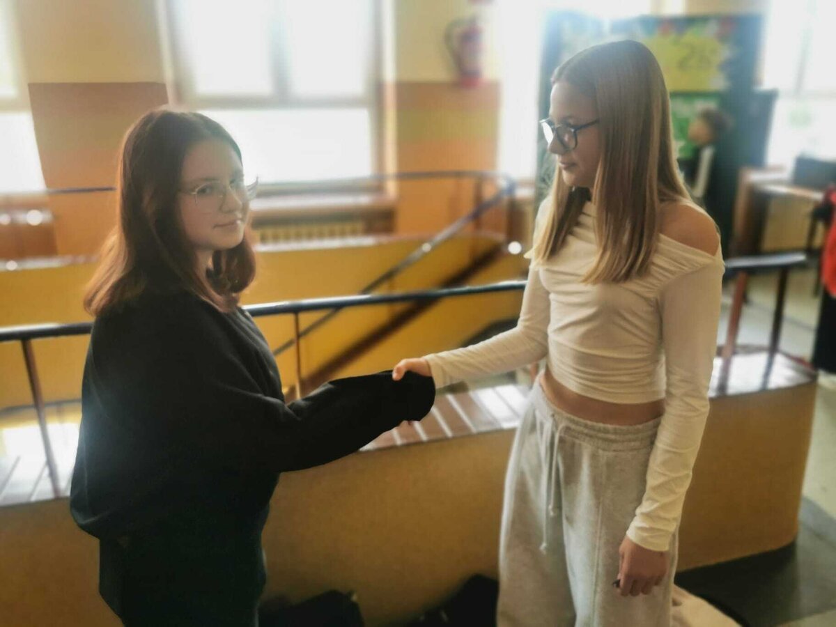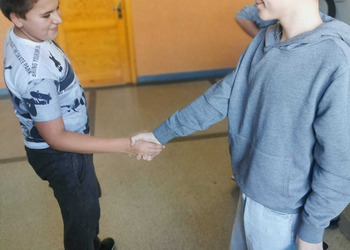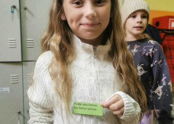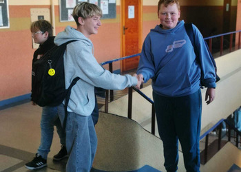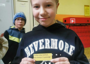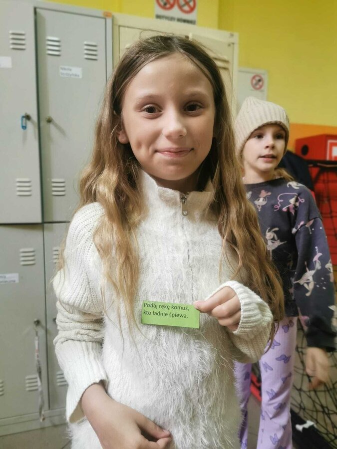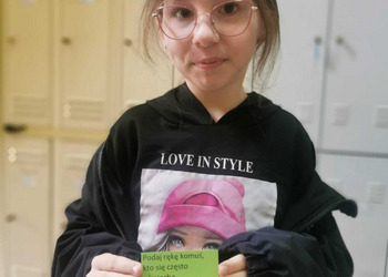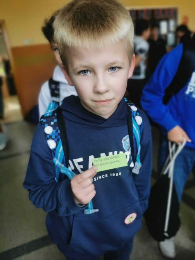 - Wtorek – „Podaj rękę komuś...” Podczas przerw szkolnych odbyła się akcja integracyjna. Uczniowie losowali karteczki z hasłami, np. „Podaj rękę komuś, kto lubi sport” lub „Podaj rękę komuś, kogo dobrze nie znasz”, a następnie szukali odpowiedniej osoby. Dzięki zabawie na szkolnych korytarzach pojawiło się mnóstwo uśmiechów, rozmów i nowych znajomości.