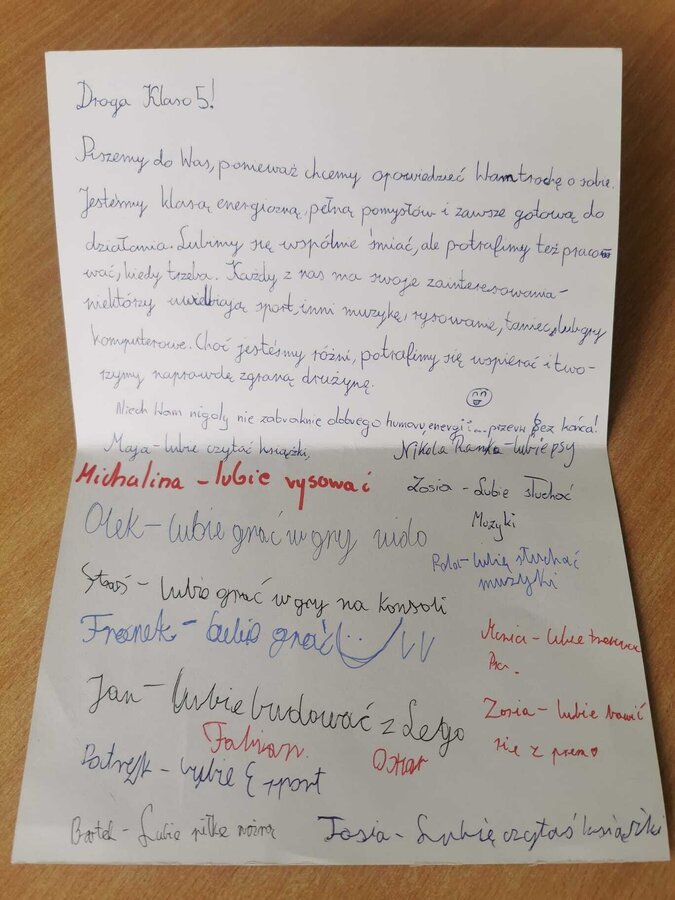 - Poniedziałek – „Poczytaj o nas” Uczniowie klas IV–VIII na lekcjach języka polskiego, angielskiego i informatyki pisali listy do wylosowanych klas, przedstawiając siebie, swoje zainteresowania i szkolne pasje. Młodsi uczniowie (klasy I–III) przygotowali barwne plakaty o swoich talentach i mocnych stronach. Efekty pracy można było oglądać na szkolnych gazetkach.
