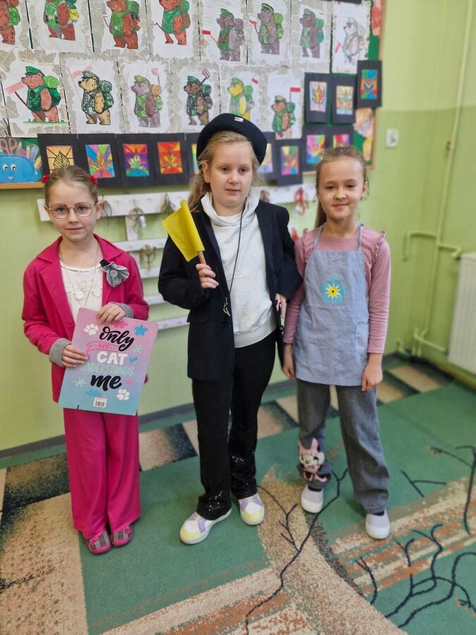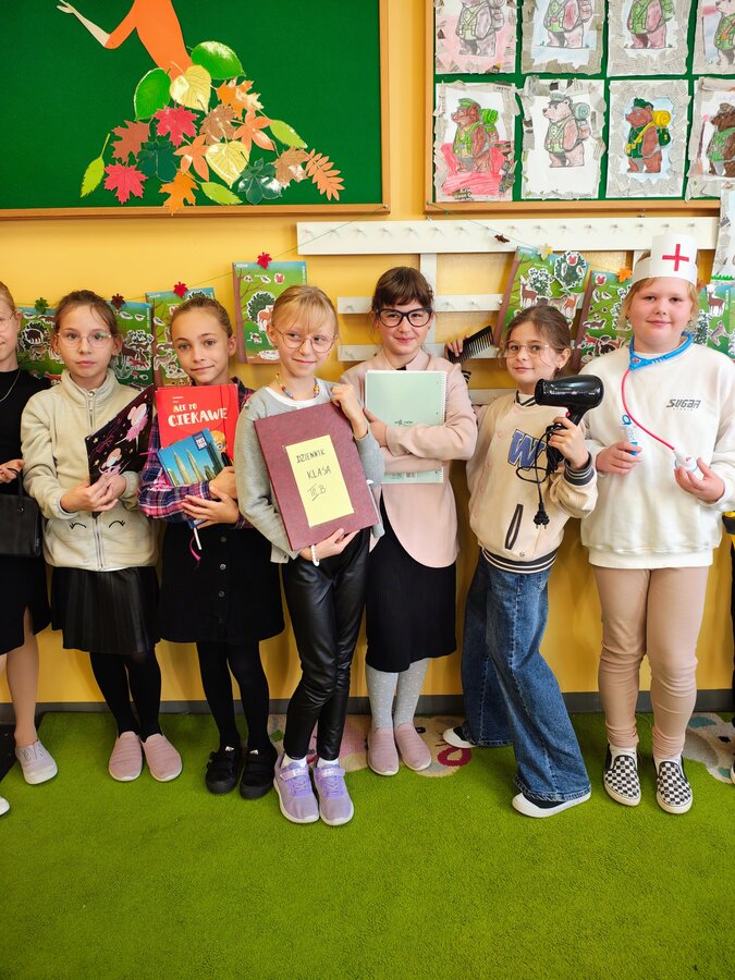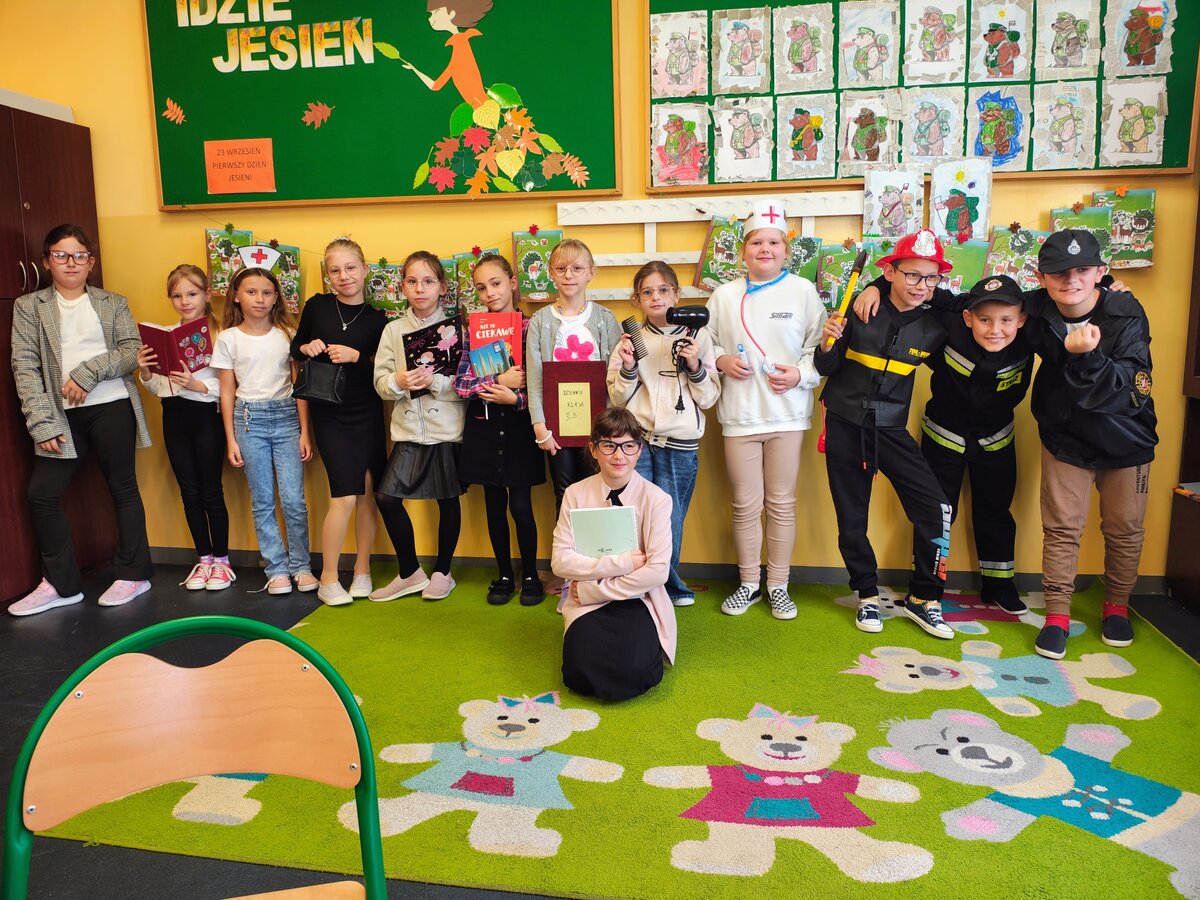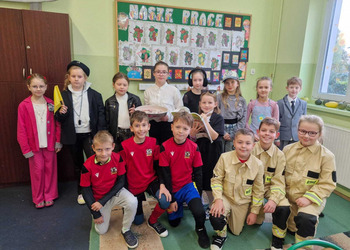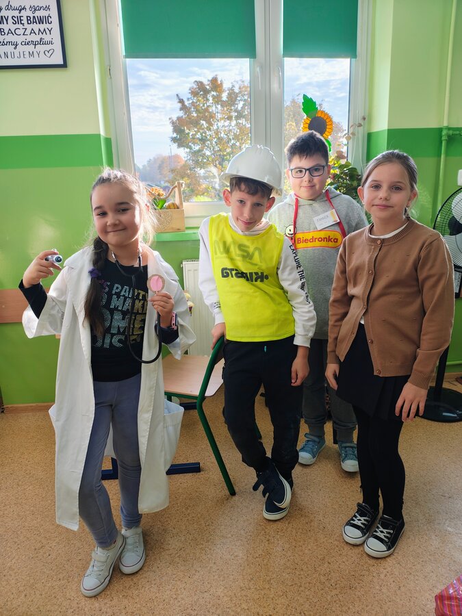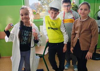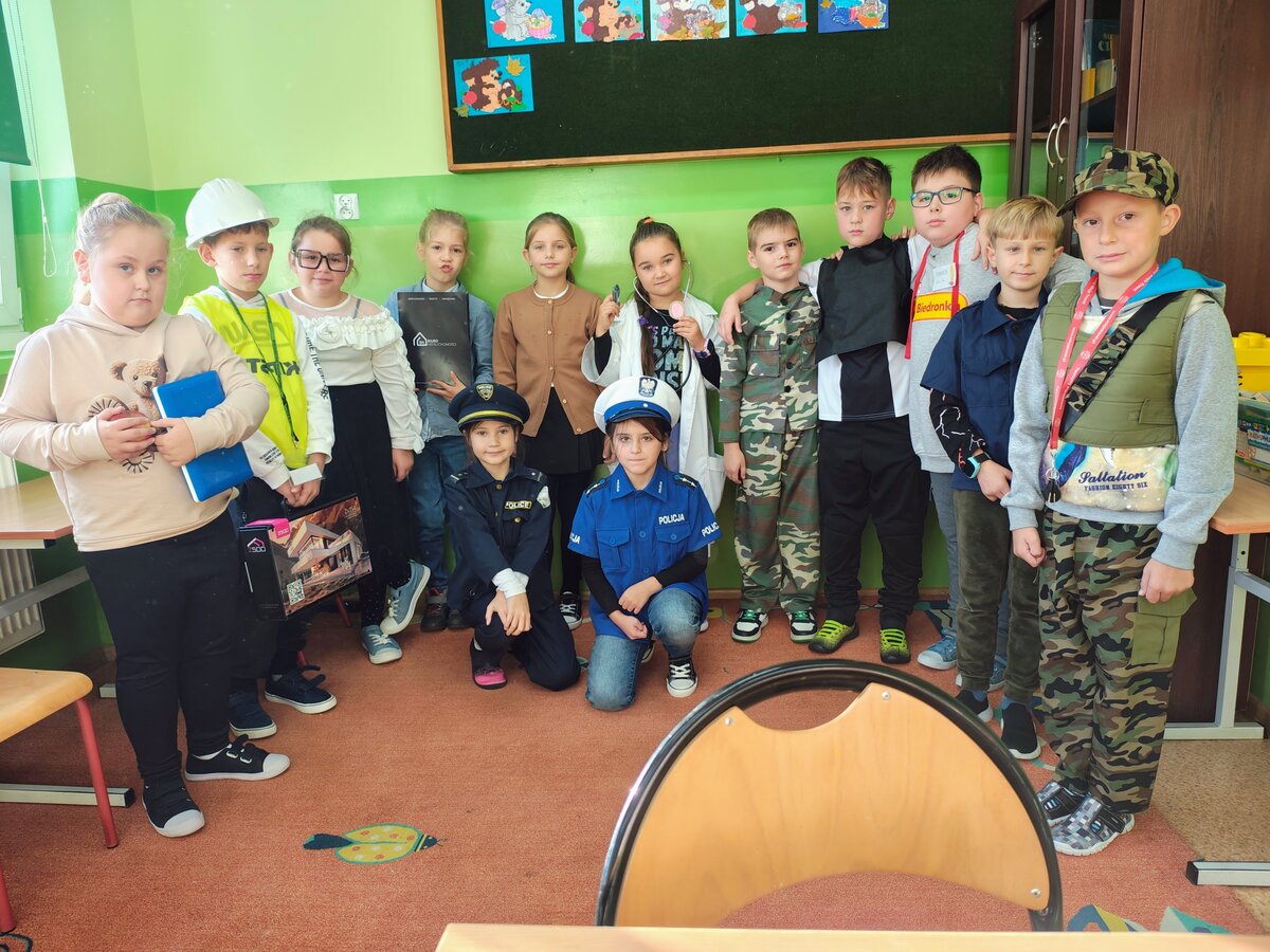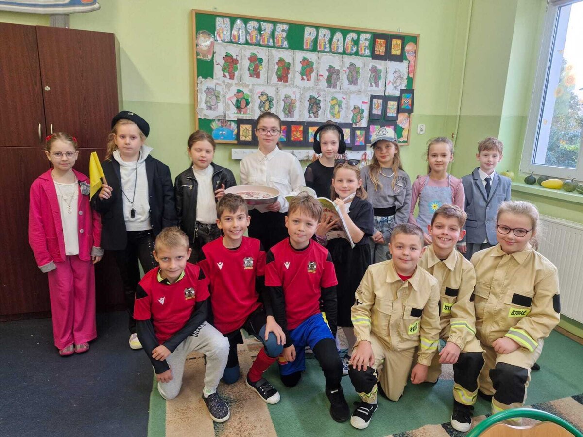 - Środa – „Przebieramy się – pomagamy” Tego dnia uczniowie klas I–III przyszli przebrani za przedstawicieli zawodów, które łączą ludzi – pojawili się m.in. strażacy, lekarze, nauczyciele, policjanci czy piloci. Podczas zajęć dzieci prezentowały swoje stroje i opowiadały o pracy w wybranym zawodzie, a na przerwach z zaangażowaniem odgrywały krótkie scenki.