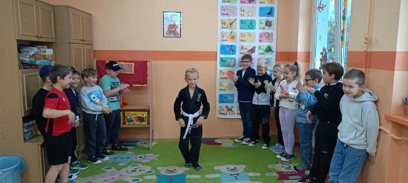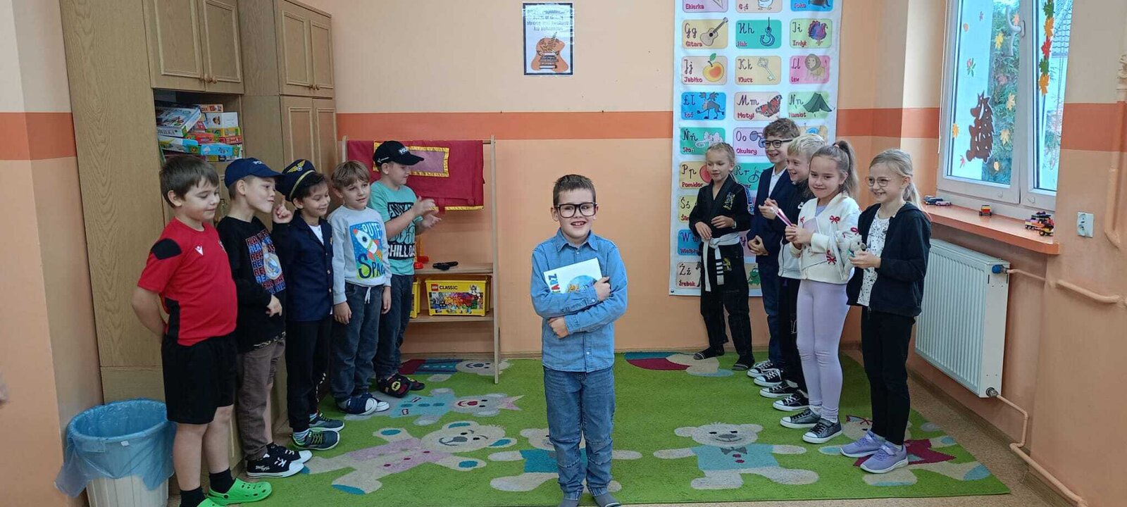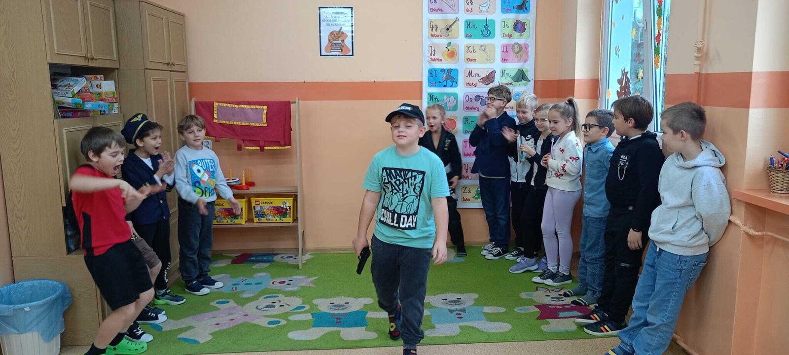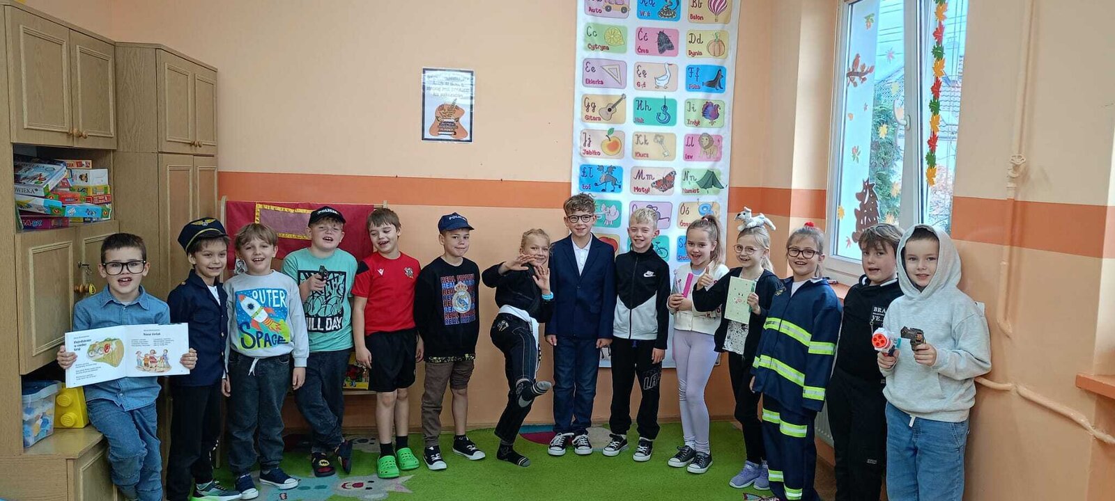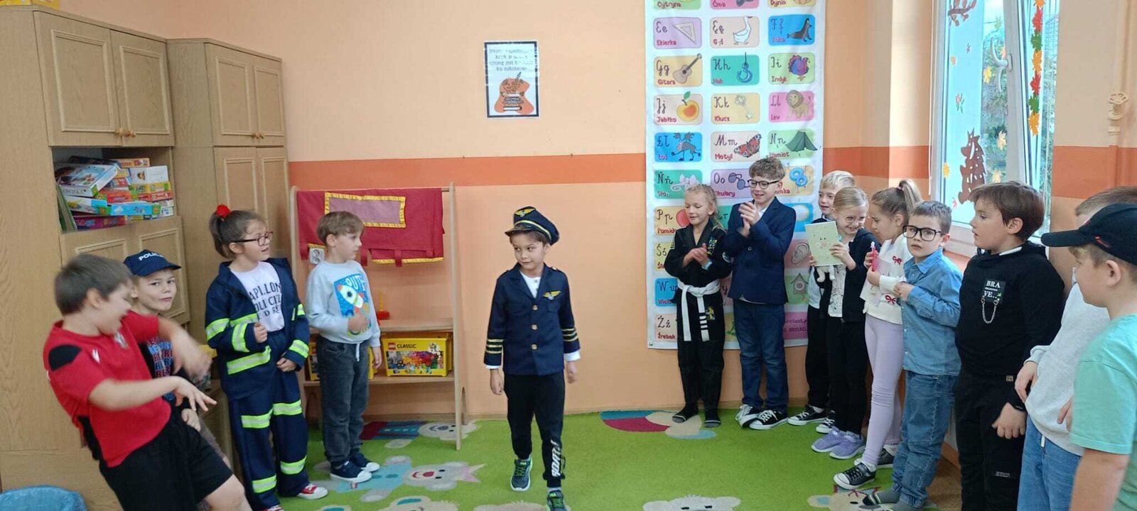 - Środa – „Przebieramy się – pomagamy” Tego dnia uczniowie klas I–III przyszli przebrani za przedstawicieli zawodów, które łączą ludzi – pojawili się m.in. strażacy, lekarze, nauczyciele, policjanci czy piloci. Podczas zajęć dzieci prezentowały swoje stroje i opowiadały o pracy w wybranym zawodzie, a na przerwach z zaangażowaniem odgrywały krótkie scenki.