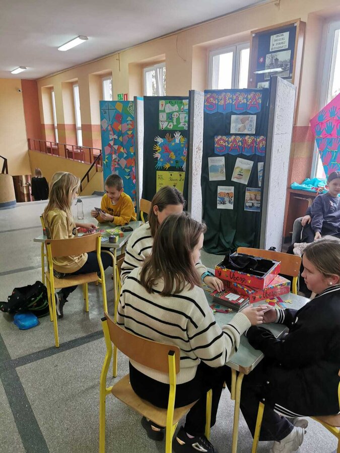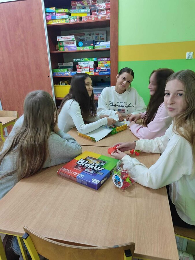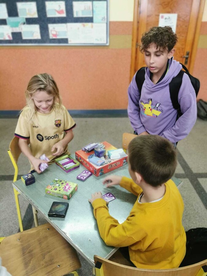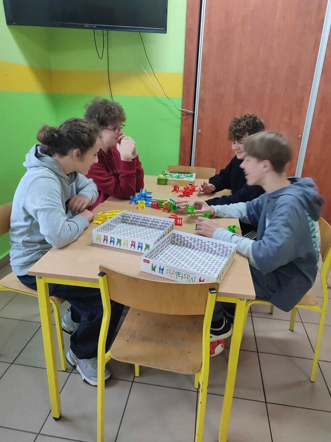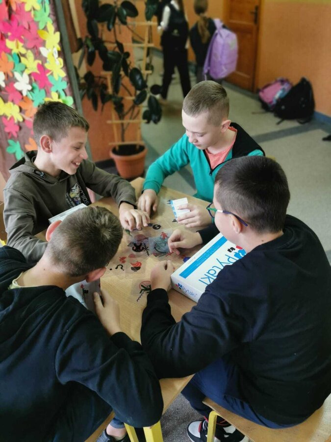 - Piątek – „Klasa offline” Tydzień zakończyliśmy dniem bez telefonów! Na przerwach uczniowie grali w gry planszowe, karciane i logiczne, korzystali ze sprzętu sportowego, bawili się na boisku i po prostu rozmawiali ze sobą. To był czas prawdziwych relacji – twarzą w twarz.