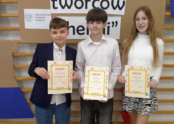 13 lutego troje uczniów z klasy 7a - Małgorzata Sikora, Bartosz Wojtkowiak i Wojciech Wujek - reprezentowało naszą szkołę w Powiatowym Konkursie Chemicznym, który odbył się w Kościanie.