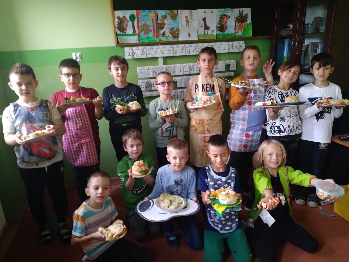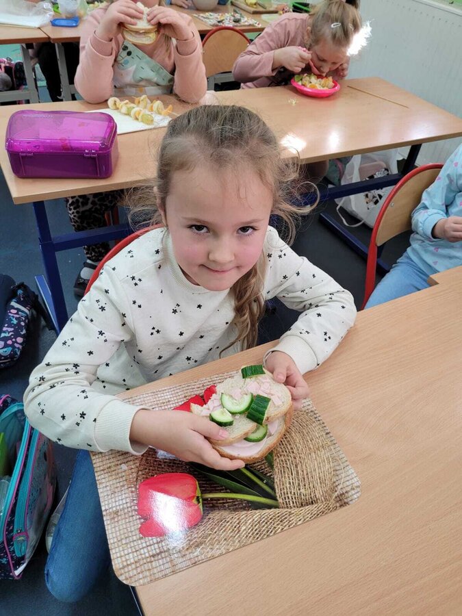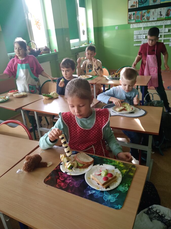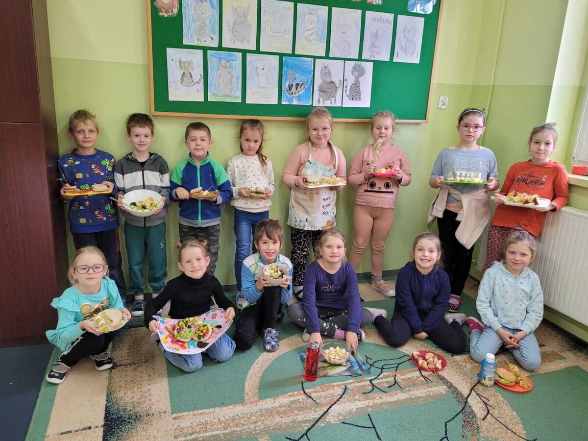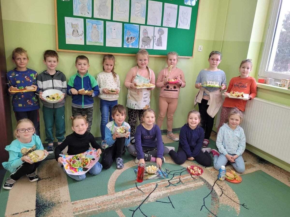 9 listopada uczniowie klas 1-3 przygotowali śniadaniową ucztę. Na stołach gościły zdrowe produkty. Przypomniano, że śniadanie to najważniejszy posiłek dnia. Dzięki niemu dzieci mają energię do nauki, lepiej koncentrują się podczas lekcji i mają siły do zabawy. To najlepszy start w nowy dzień.