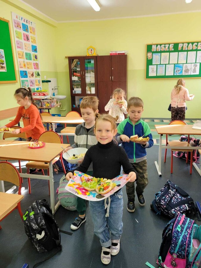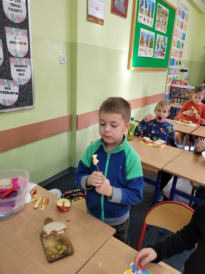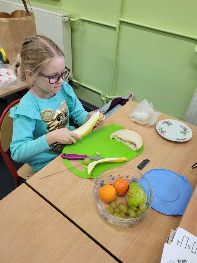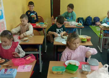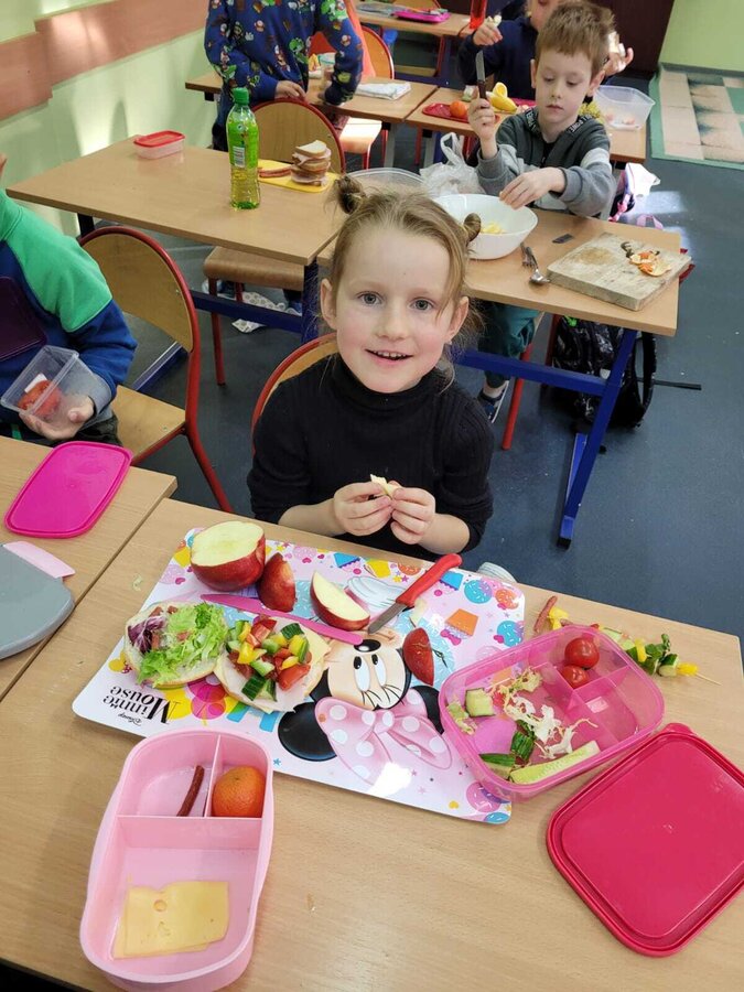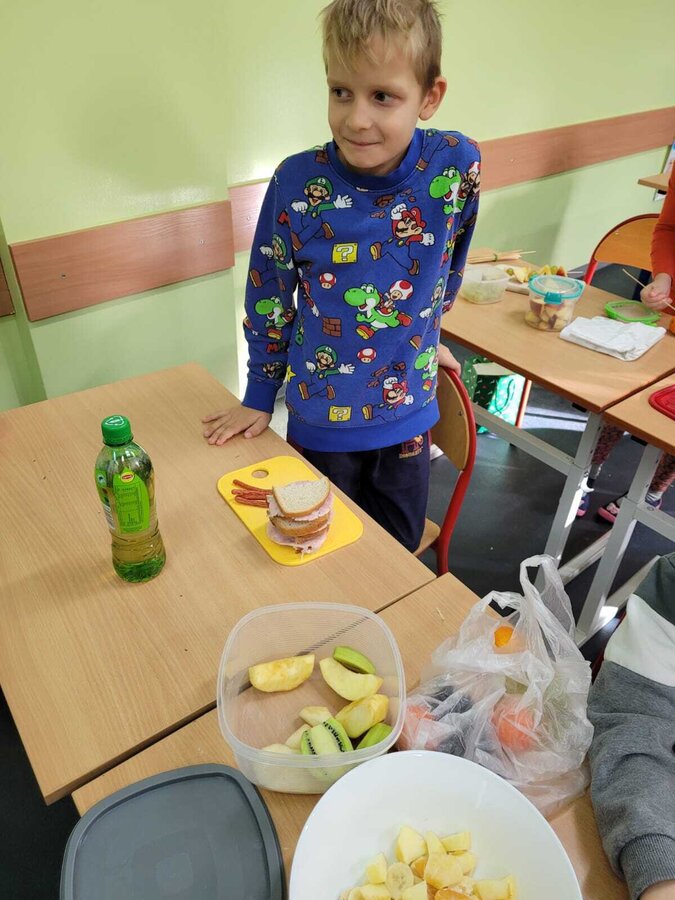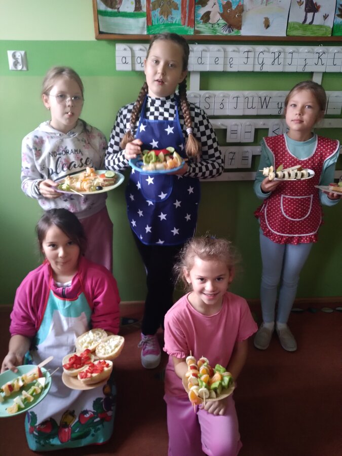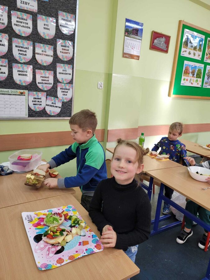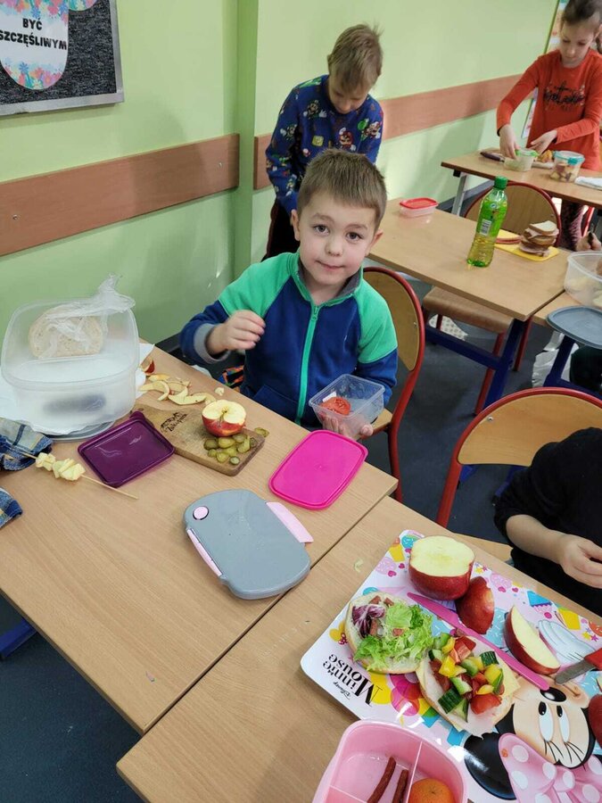 9 listopada uczniowie klas 1-3 przygotowali śniadaniową ucztę. Na stołach gościły zdrowe produkty. Przypomniano, że śniadanie to najważniejszy posiłek dnia. Dzięki niemu dzieci mają energię do nauki, lepiej koncentrują się podczas lekcji i mają siły do zabawy. To najlepszy start w nowy dzień.