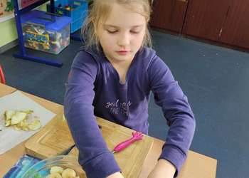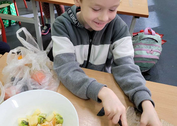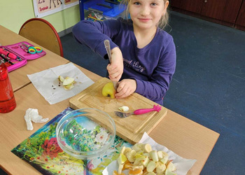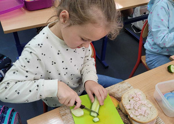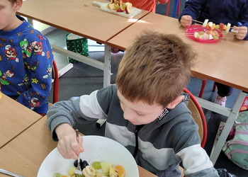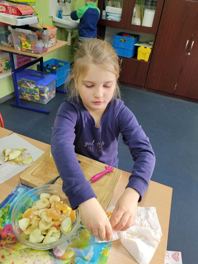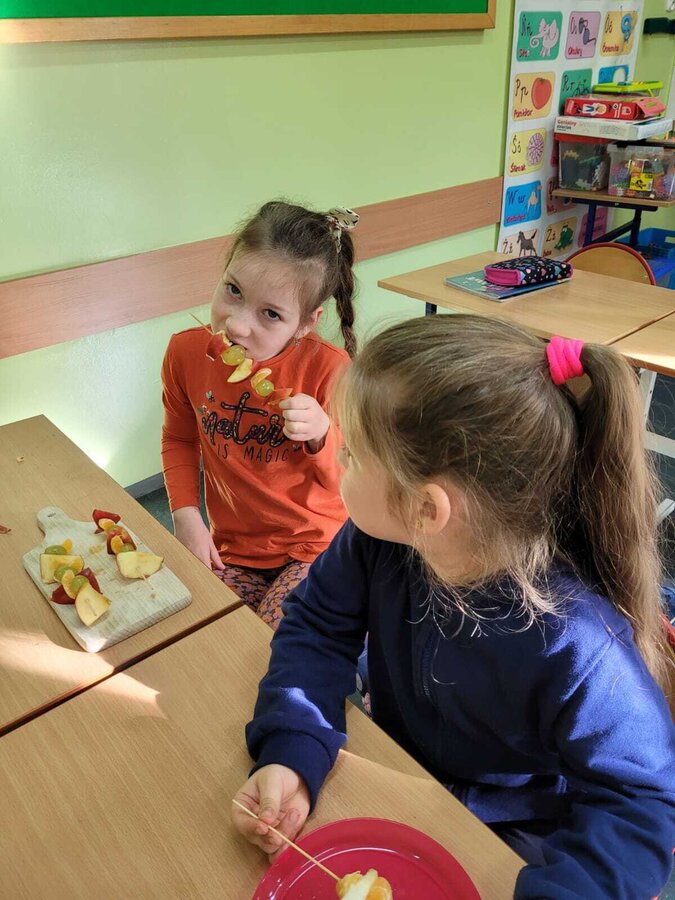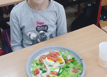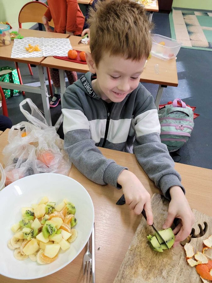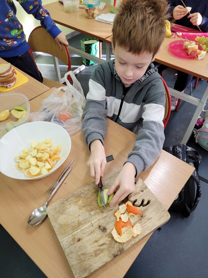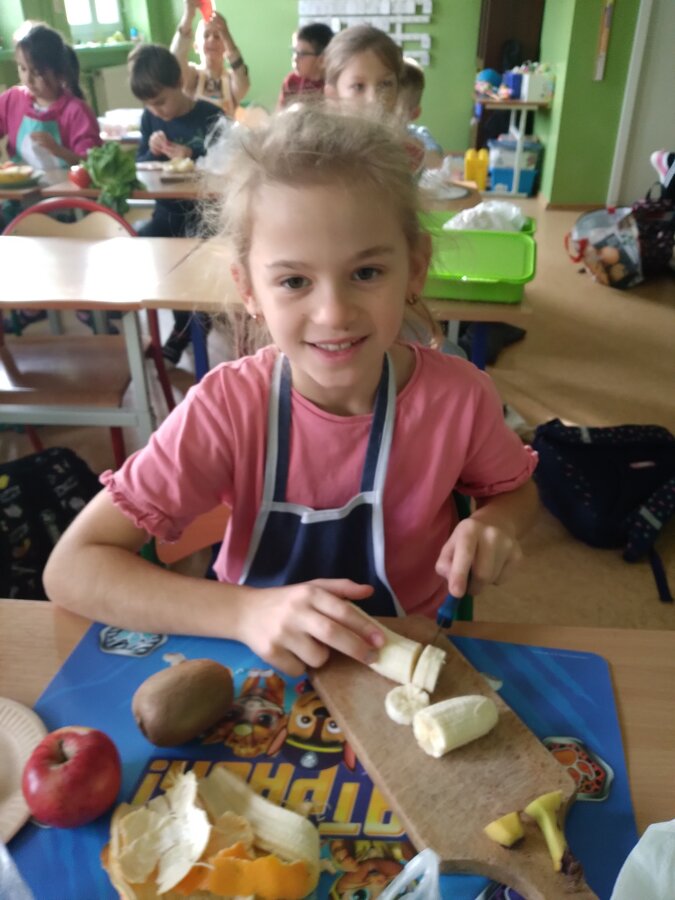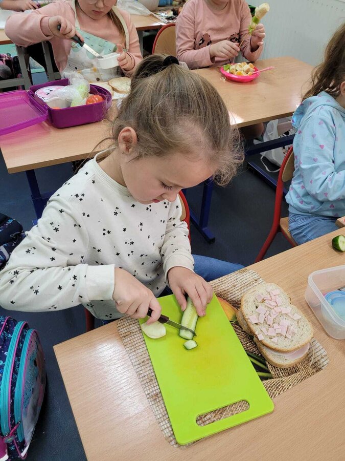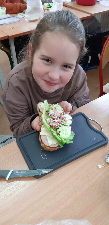 9 listopada uczniowie klas 1-3 przygotowali śniadaniową ucztę. Na stołach gościły zdrowe produkty. Przypomniano, że śniadanie to najważniejszy posiłek dnia. Dzięki niemu dzieci mają energię do nauki, lepiej koncentrują się podczas lekcji i mają siły do zabawy. To najlepszy start w nowy dzień.