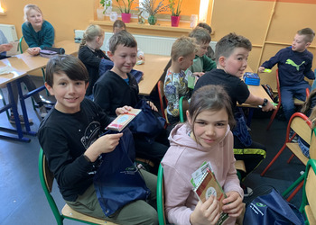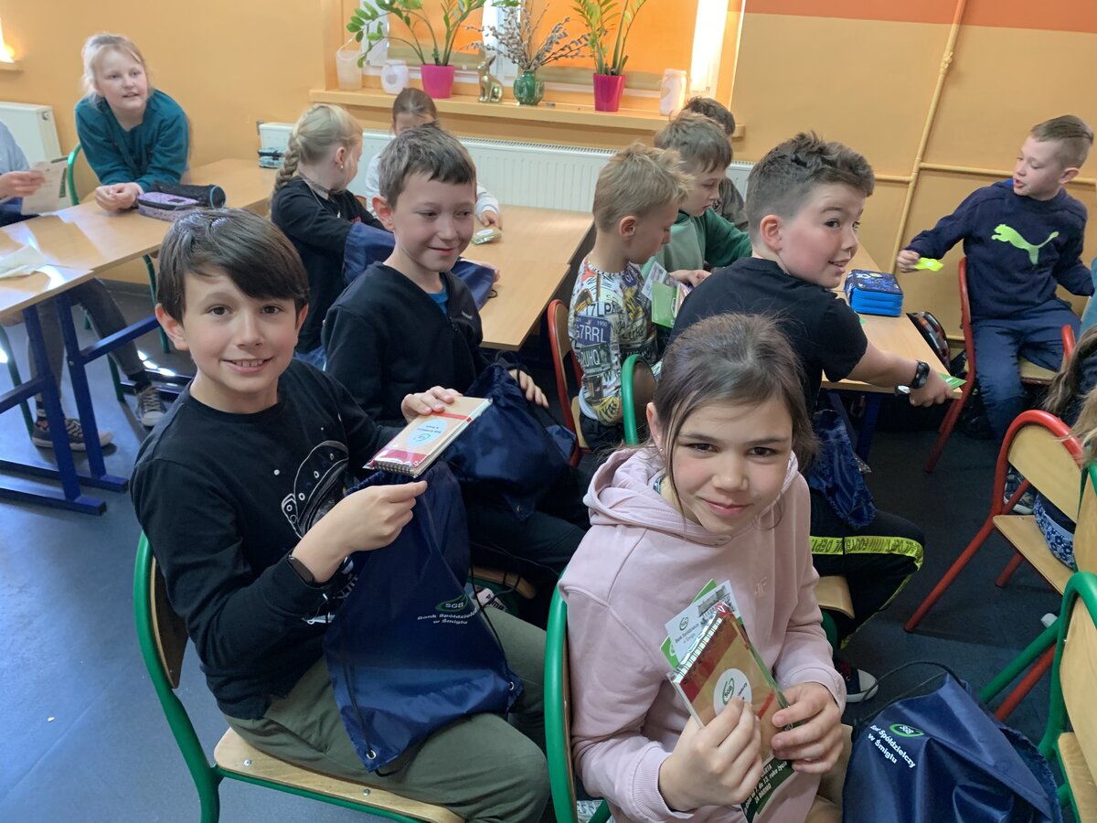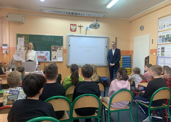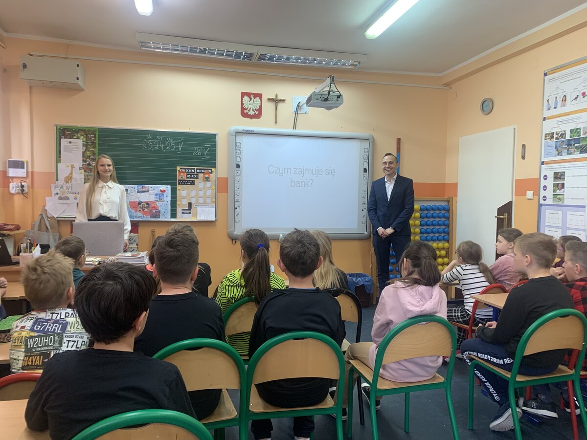Dnia 11.05.2023 r. klasy trzecie brały udział w spotkaniu dotyczącym bankowości. Pani Monika i pan Jacek reprezentowali Bank Spółdzielczy w Śmiglu i opowiedzieli dzieciom m.in. o organizacji wydziałów banku.