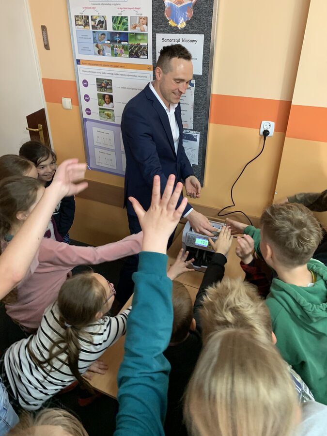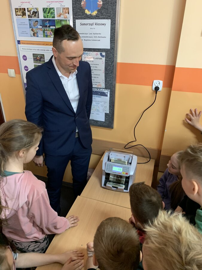 Uczniowie mieli okazję rozróżniać fałszywe banknoty, przeliczać pieniądze w liczarce, dowiedzieli się, jakie usługi bankowe oferuje Bank Spółdzielczy dla najmłodszych oraz obejrzeli filmiki przedstawiające typy oszustw w bankowości.
