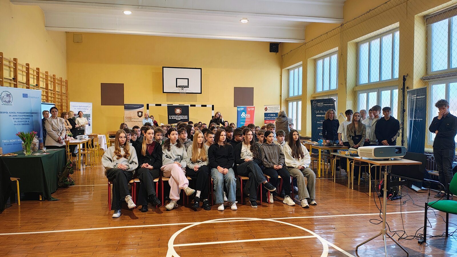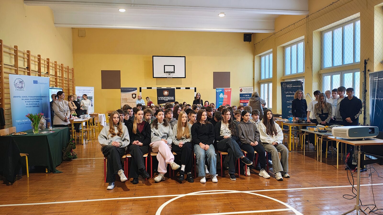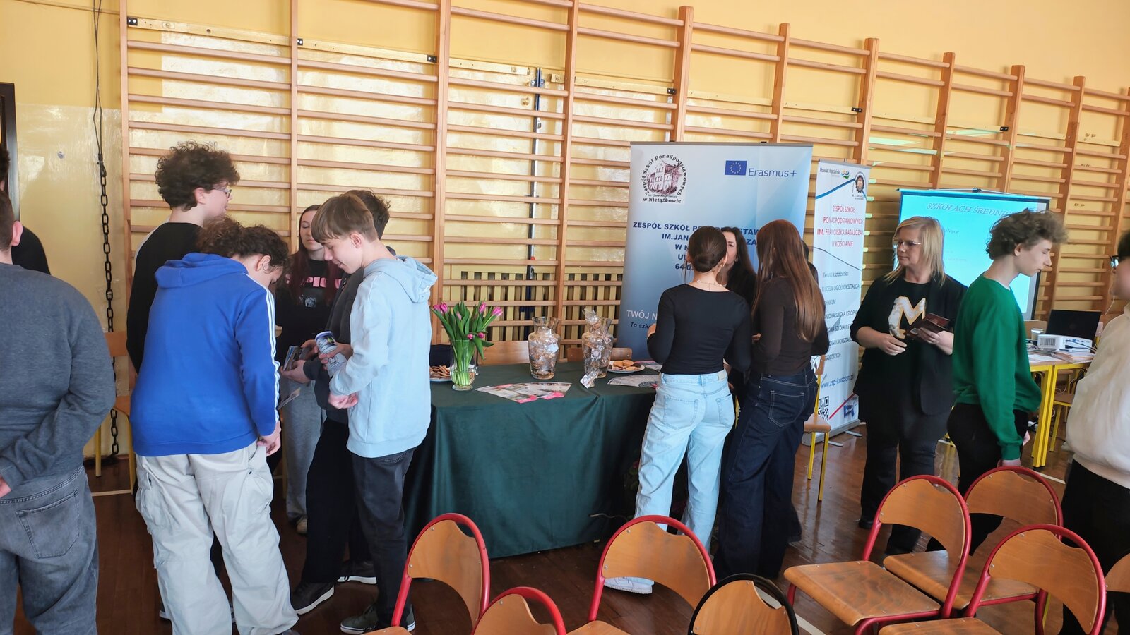 6 marca 2026 r. w Szkole Podstawowej im. Powstańców Wielkopolskich w Starym Bojanowie odbyły się Targi Edukacyjne dla uczniów klas 7 i 8. Wydarzenie było doskonałą okazją do poznania oferty szkół ponadpodstawowych oraz zastanowienia się nad wyborem dalszej drogi edukacyjnej. Podczas targów swoją ofertę zaprezentowało 7 szkół ponadpodstawowych z Kościana, Nietążkowa oraz Leszna. Przedstawiciele szkół opowiedzieli o kierunkach kształcenia oraz przedstawili propozycje przygotowane na rok szkolny 2026/2027. Uczniowie mogli poznać zarówno dobrze znane kierunki, jak i nowe zawody oraz profile klas, które pojawiły się w ofercie szkół. Szczególnym elementem spotkania była obecność absolwentów naszej szkoły, którzy przyjechali wraz z przedstawicielami swoich szkół ponadpodstawowych. Podzielili się oni swoimi doświadczeniami i opowiedzieli młodszym kolegom i koleżankom, jak wygląda nauka w wybranych przez nich szkołach. Po krótkich prezentacjach uczniowie mieli możliwość podejść do przygotowanych stanowisk, porozmawiać z przedstawicielami szkół, zadać pytania oraz dowiedzieć się więcej o interesujących ich kierunkach. Targi Edukacyjne cieszyły się dużym zainteresowaniem i były dla uczniów wartościową okazją do zdobycia informacji, które z pewnością pomogą im w podjęciu ważnej decyzji dotyczącej wyboru szkoły ponadpodstawowej.