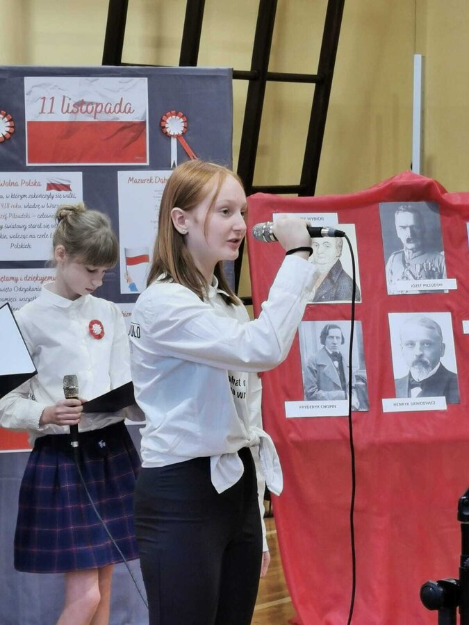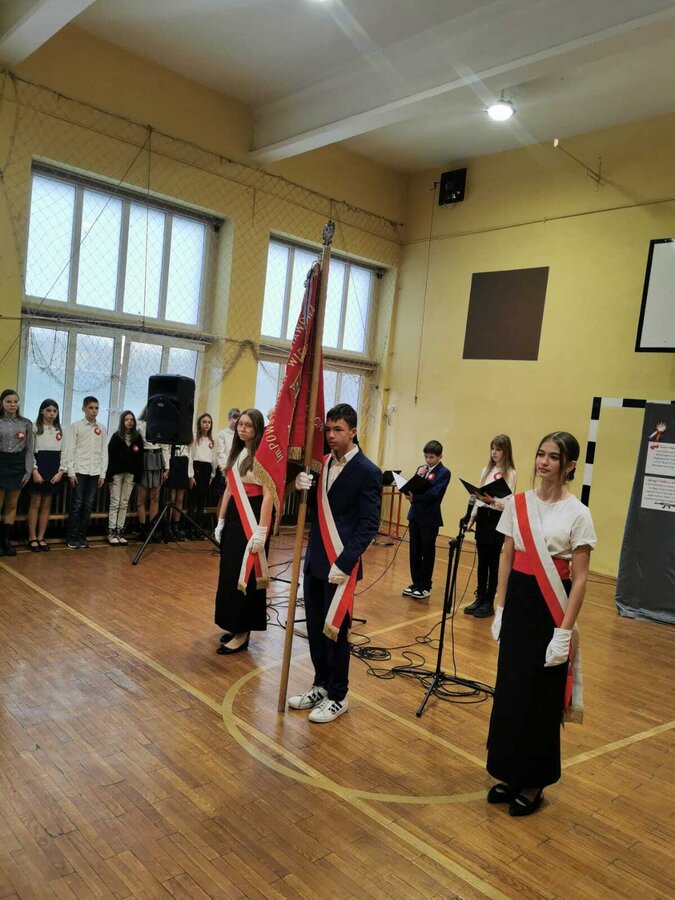 Świętowaliśmy tę datę podczas uroczystego apelu. Rozpoczęliśmy "Mazurkiem Dąbrowskiego", a potem występujący przypomnieli wszystkim o ważnych wydarzeniach i osobistościach, które doprowadziły do sławetnego roku 1918. Odśpiewaliśmy też wspólnie znane pieśni żołnierskie i patriotyczne.