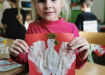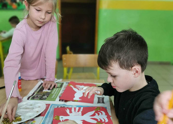 W świetlicy szkolnej zaś cały tydzień trwały przygotowania do święta. Uczniowie wykonywali rozetki i symbole narodowe.